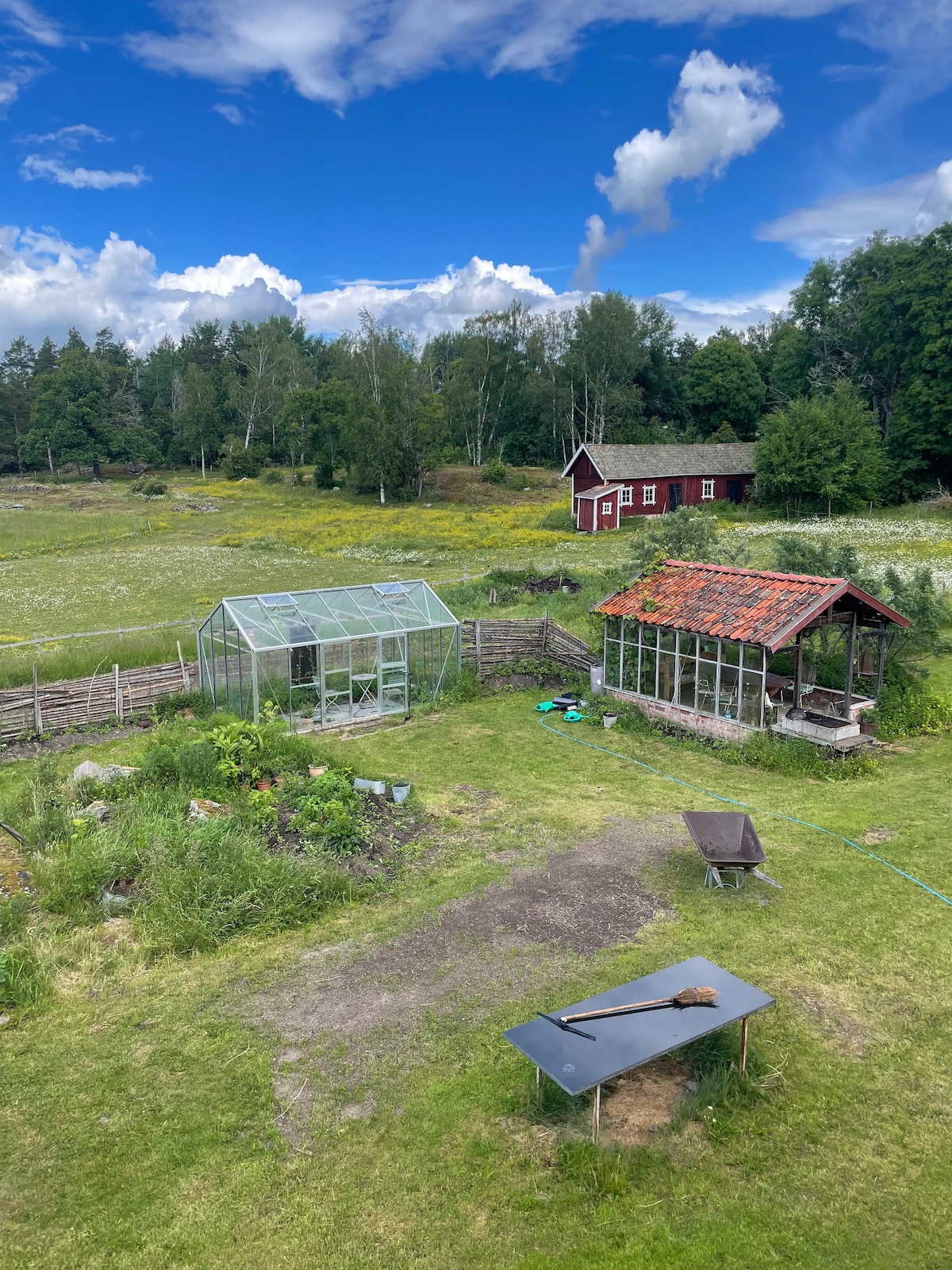 Namiņš mežā, netālu no Mälaren un Sundbyholmstravet