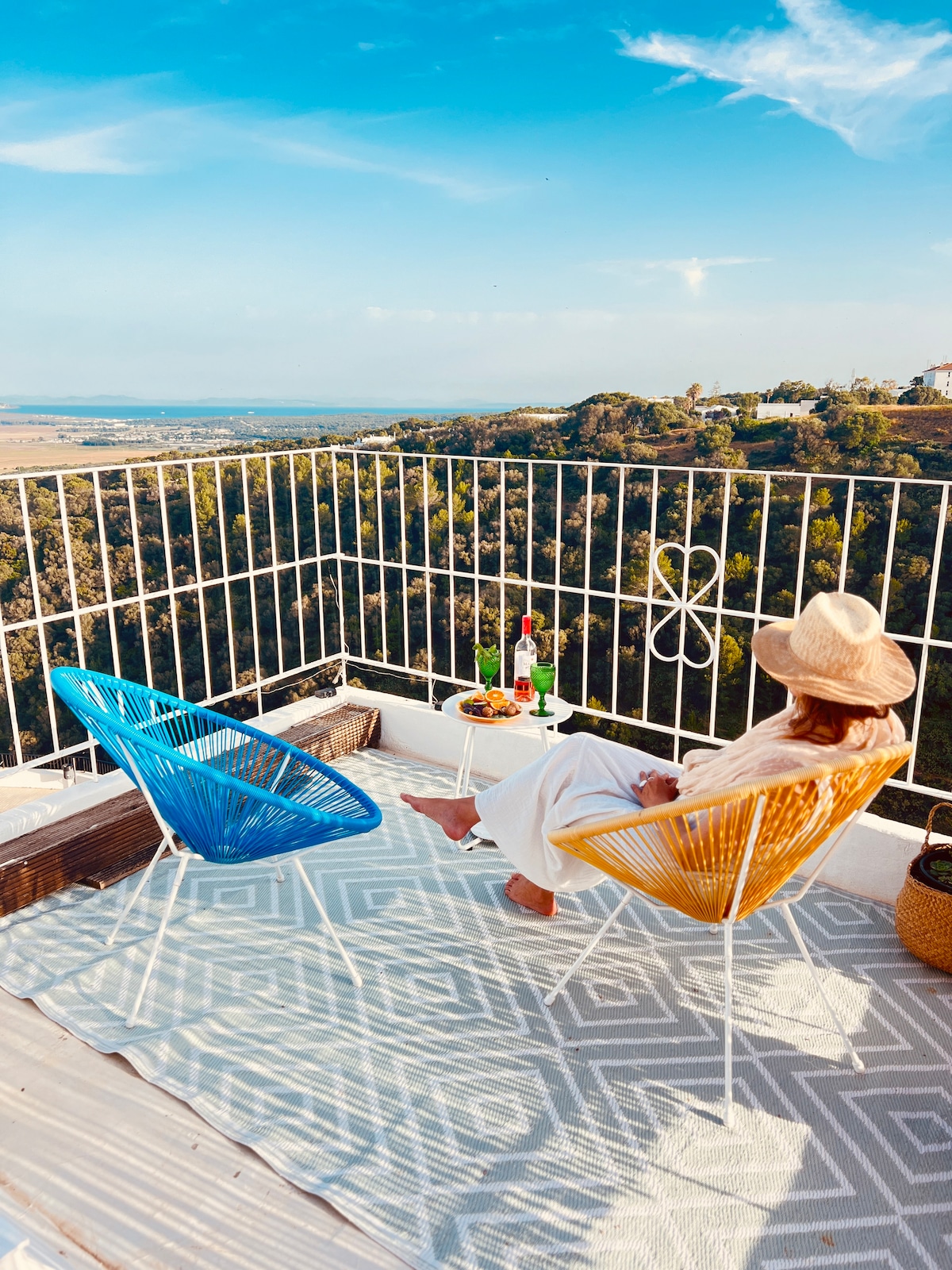 Private Rooftop Terrace with Ocean & Africa views — perfect for slow mornings and golden sunsets. Our Eco-stylish Andalusian tiny "Tower" home is in the heart of the Old Town Walls, with a private terrace and panoramic views. Designed using natural materials, this romantic retreat offers calm, privacy, and timeless charm—one step away from historic streets, cafés, and culture.