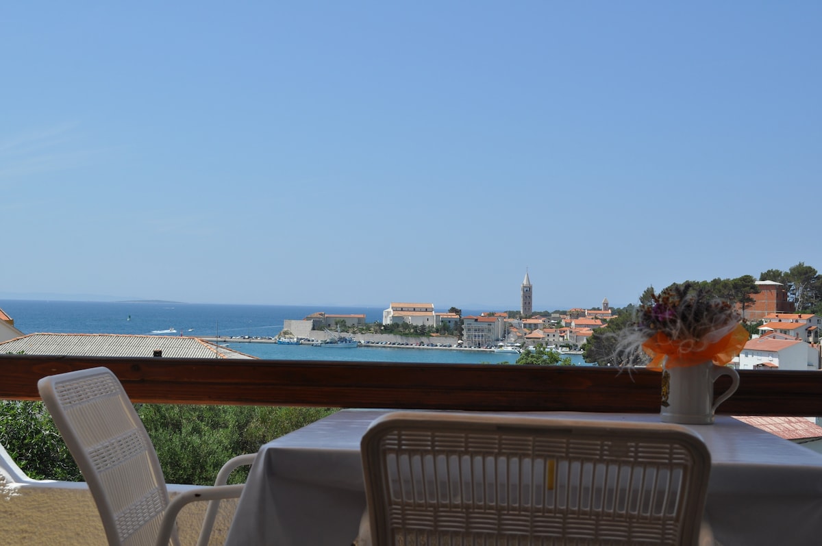 Saulains dzīvoklis, kas atrodas pirmajā rindā uz jūru, ir divas guļamistabas, virtuve, tualete un divas jaukas terases. Pie mājas atrodas privāta terase, kur baudīt sauli un peldēties. Tuvākā pludmale atrodas 1 minūtes gājiena attālumā, un slavenā Zrće pludmale Novaljā atrodas 15 minūšu brauciena attālumā ar automašīnu. Līdz dzīvoklim 5 minūšu gājiena attālumā atrodas veikals.