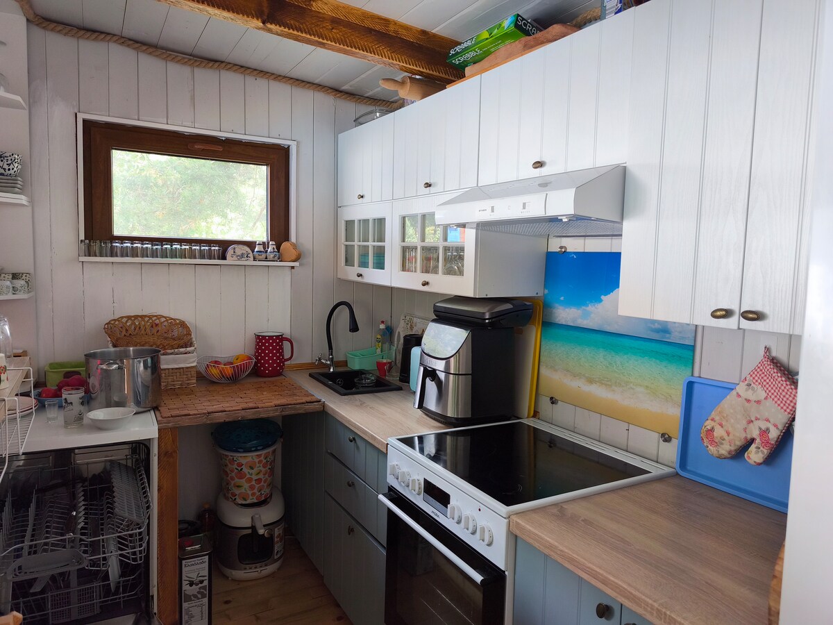 Mūsu brīvdienu māja kempinga teritorijā. Skaista, plaša māja ar 2 lielām guļamistabām,vannasistabu ar ieeju dušā un pilnībā aprīkotu virtuvi. Māja pilnībā atjaunota 2019. gadā.