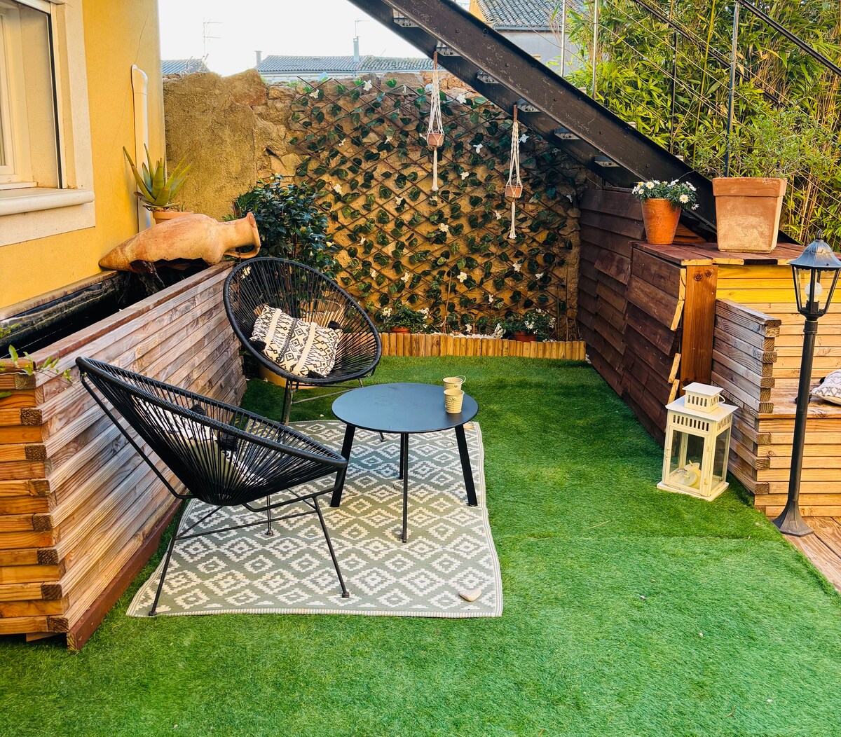 Chez Catou: klusa 30 m2 rindu māja ar privātu terasi Droša piekļuve (vārtejas kods) – Viss nepieciešamais komfortam (gaisa kondicionētājs, Wi-Fi u.c.) – Tiek piedāvāta kafija (Senséo)/tēja, mājās gatavots ievārījums Pilnībā aprīkota virtuve Mēs dzīvojam tieši blakus. Atļauti tīri un jauki mīļdzīvnieki. Ja jūs ieradīsieties, tas ir tāpēc, ka jums patīk dzīvnieki, neparastas mājas, dažkārt vintage dekors, Formica galdi, justies kā mājās ar skapjiem, kas nav tukši, un mieru...