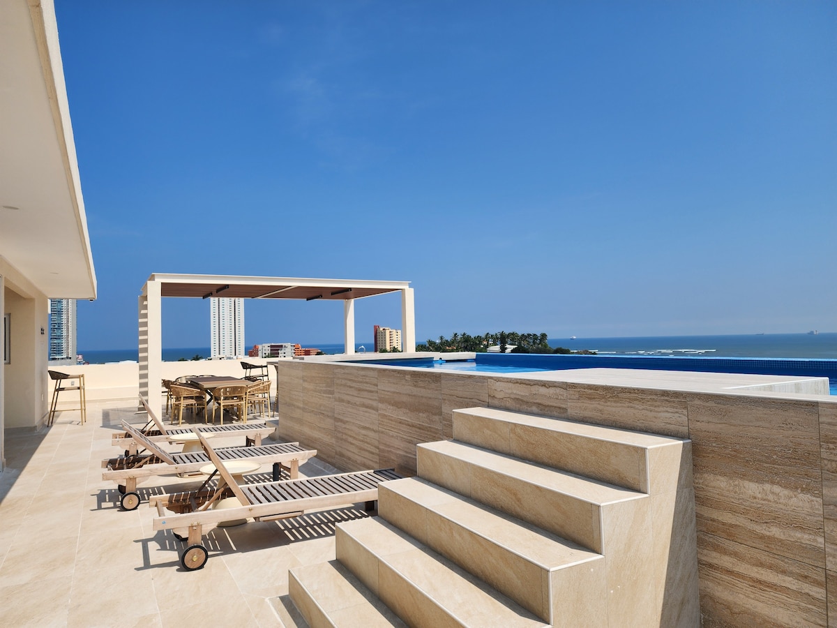 Moderns dzīvoklis jūras priekšā Palms 702 ar baseinu