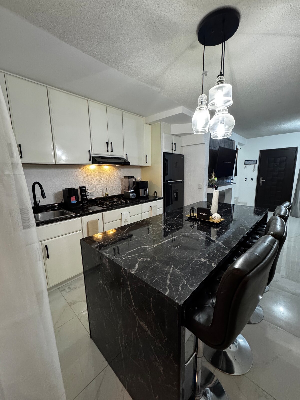 Izbaudiet komfortu, ko sniedz šī jaunā, klusā un ļoti centrā esošā naktsmītne. Lielisks skats un lieliska atrašanās vieta tikai 5 minūšu attālumā no Meksikas un ASV robežas. Tikai dažu kvartālu attālumā no košās Av. Revolución. Tikai soļu attālumā no restorāniem, naktsdzīves un medicīnas birojiem. Tajā ir 1 guļamistaba (1 divguļamā gulta + piepūšamais matracis), 1 50collu televizors ar aplikācijām: HBO, Netflix, MLB. Virtuves piederumi, veļasmašīna, žāvētājs un gludeklis, fēns. Bezmaksas autostāvvieta ar diennakts apsardzi