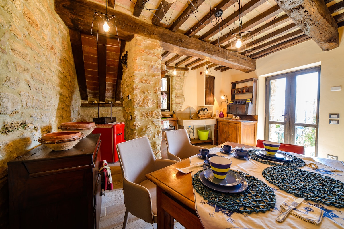 Akmens lauku māja klusā kalna nogāzē tikai 10 minūšu gājiena attālumā no viduslaiku Panicale. Plašs skats uz Trasimeno ezeru, 2 divvietīgas guļamistabas, 2 pilnībā aprīkotas vannasistabas + 1 tualete, pilnībā aprīkota virtuve, Wi-Fi, veļas mazgātava un bezmaksas privāta autostāvvieta. Mierīga, ērta bāze Umbrijas un tuvējās Toskānas apskatei