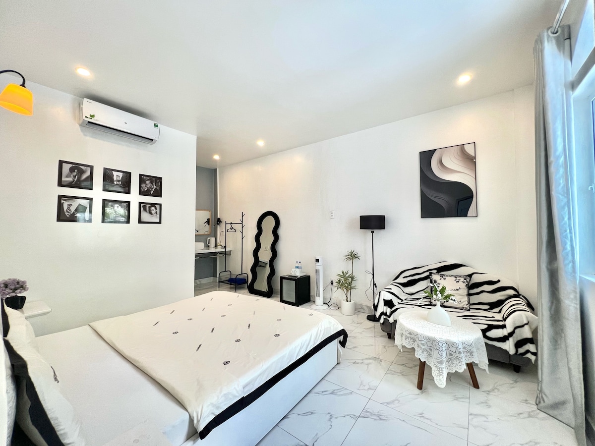 Rudens atpūta – silti toņi, maigas tekstūras un mājīgi stūrīši, kas radīti nesteidzīgiem rītiem un filmu vakariem. Mūsu 1BR ir plaša ar ērtu dīvāngultu un pilnībā aprīkotu virtuvi, kurā varat pagatavot maltīti pirms Netflix straumēšanas 100 collu projektora ekrānā. Atrodas klusā strupceļā pie Han tirgus un tikai dažu minūšu attālumā no Pūķa tilta, piedāvājot gan pilsētas dzīvi, gan mieru Tīrs, mierīgs un stilīgs – kā zelta stunda, kas iemūžināta telpā. Uzbrauciet ar liftu augšā, nolieciet somas un ļaujiet Danangai palēnināties jūsu vietā.