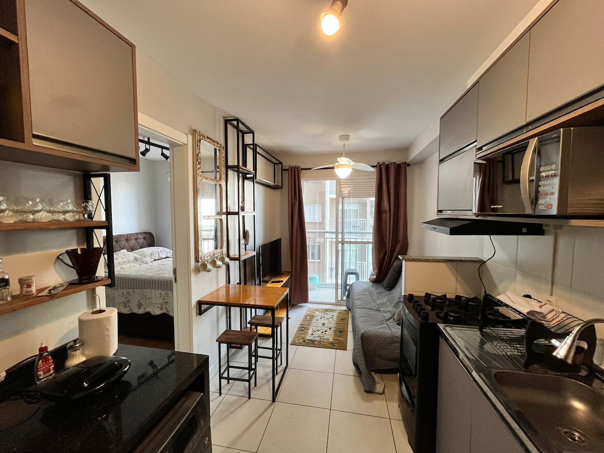 Charmoso Studio, kas atrodas 7. stāvā ar privileģētu skatu uz saules enerģiju. Ideāli piemērots pāriem, cilvēkiem, kas ceļo vienatnē, vai ģimenēm ar bērniem. Ļoti labi izvietots; - 5 MIT. gājiens uz Tokio Marine un Villa Blue Tree; - 8 mit. kājām no Nestlé un João Dias stacijas; - 2 km (10 m ar automašīnu) Vibra São Paulo; - 2 km (8 m ar automašīnu) Expo Transamérica SP; - 8 km (15 m ar automašīnu) Morumbi stadions; - 11 km ( 20 m ar automašīnu) Interlagos autodroms; - 16 km (30 m ar automašīnu) Allianz Park.