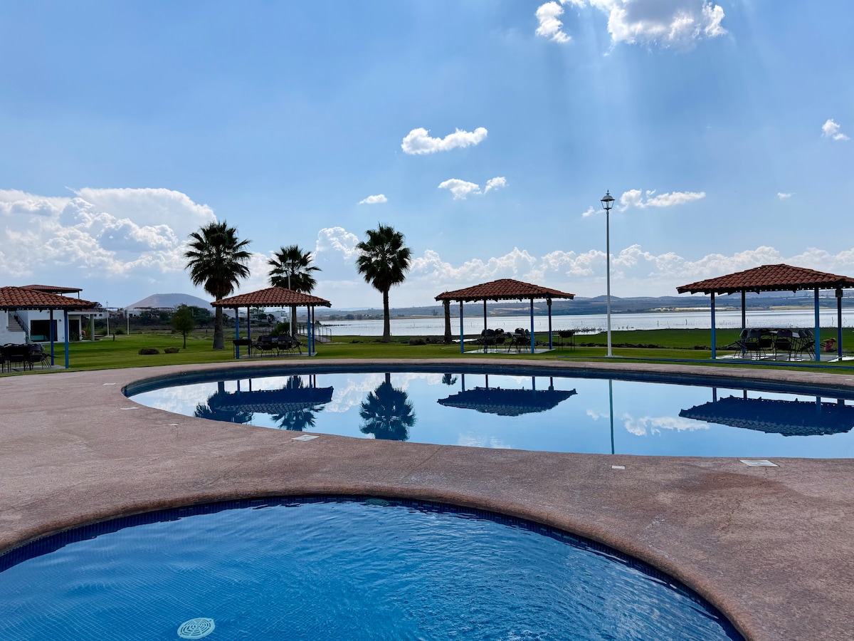 La Casa de Villa atrodas pie Atotonilco lagūnas ar tiešu ieeju, kas ir ideāli piemērota peldēšanai, braukšanai ar kajakiem, airiem vai vindsērfinga sezonā, jo tā ir ļoti klusa un droša. Tā atrodas 10 minūšu brauciena attālumā no Centro de Villa corona, kur jūs varat doties ēst dažādus antojitos un atrast ciemata slavenās čaumalas plkst. 17:00. 15 minūšu attālumā atrodas karsts ūdens, slidkalniņu parks.