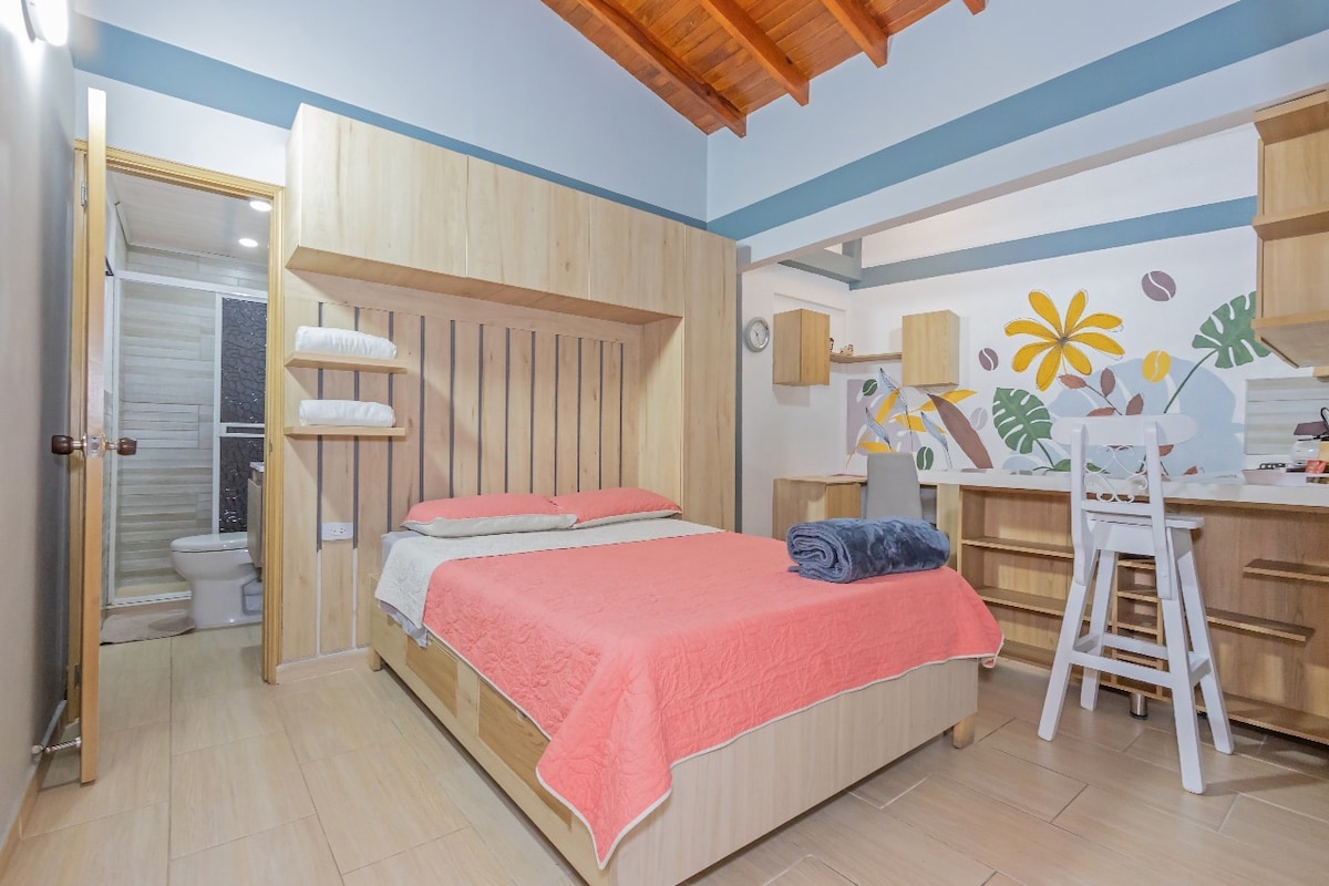 Strādājiet, atpūtieties un atgūstiet spēkus šajā plašajā loftā ar balkonu, 500 MB Wi-Fi, gaisa kondicionieri, pilnu virtuvi un divguļamo gultu. Izbaudiet jumta burbuļvannu, sporta zāli, kopdarbu un zaļās zonas Aiana Verde—Medellín ilgtspējīgajā pilsētas centra ēkā. Tikai 50 metru attālumā no Bicentenario tramvaja stacijas. Ideāli piemērots digitālajiem klejotājiem, vadītājiem vai pāriem. Rezervējiet tūlīt un izbaudiet Medeljinu ar stilu, ar komfortu, ātrumu un iedvesmu.