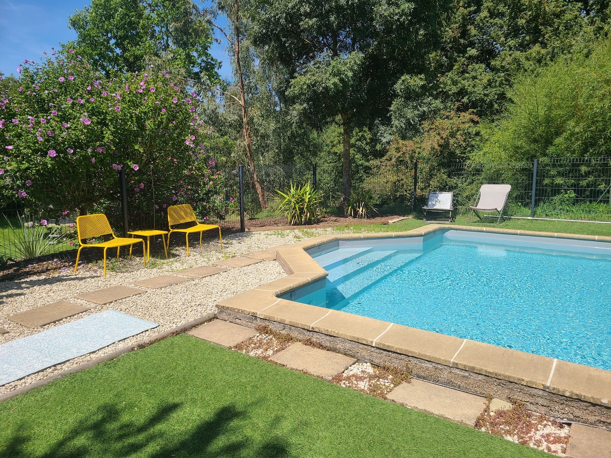 Apburoša kotedža 4 pers. /Peldbaseins. Gite la Bergerie