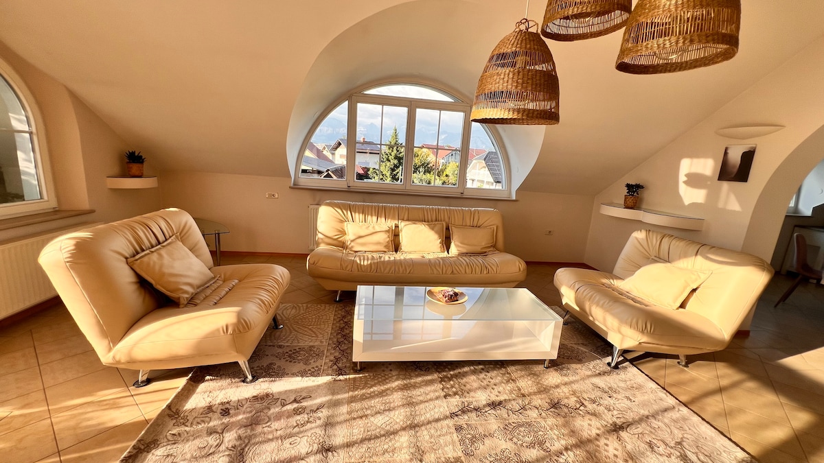 Skats uz kalniem – 110 m² viss stāvs – bezmaksas autostāvvieta