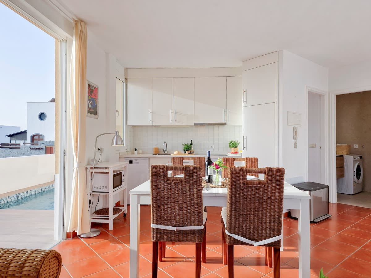 Kanāriju stila mājoklis ar skatu uz jūru, terase un baseins