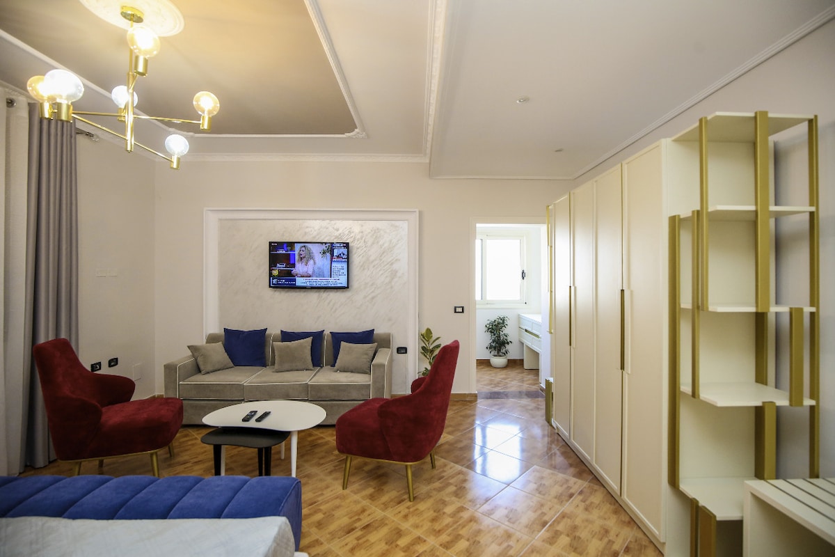 Pamostieties ar satriecošiem skatiem uz jūru Vloras dinamiskās Lungomare promenādes sirdī! Mūsu gaišās un modernās istabas ar skatu uz jūru atrodas tikai dažu soļu attālumā no pludmales, restorāniem, bāriem un visa, kas nepieciešams atpūtai. Izbaudiet rīta kafiju uz balkona ar skatu uz Jonijas jūru vai dodieties saulrieta pastaigā pa promenādi. Katrā numurā ir ērta gulta, gaisa kondicionētājs, ātrs Wi-Fi un privāta vannasistaba, kas ir ideāli piemērota pāriem, individuāliem ceļotājiem vai digitāliem klejotājiem, kuri vēlas atpūsties pie jūras.