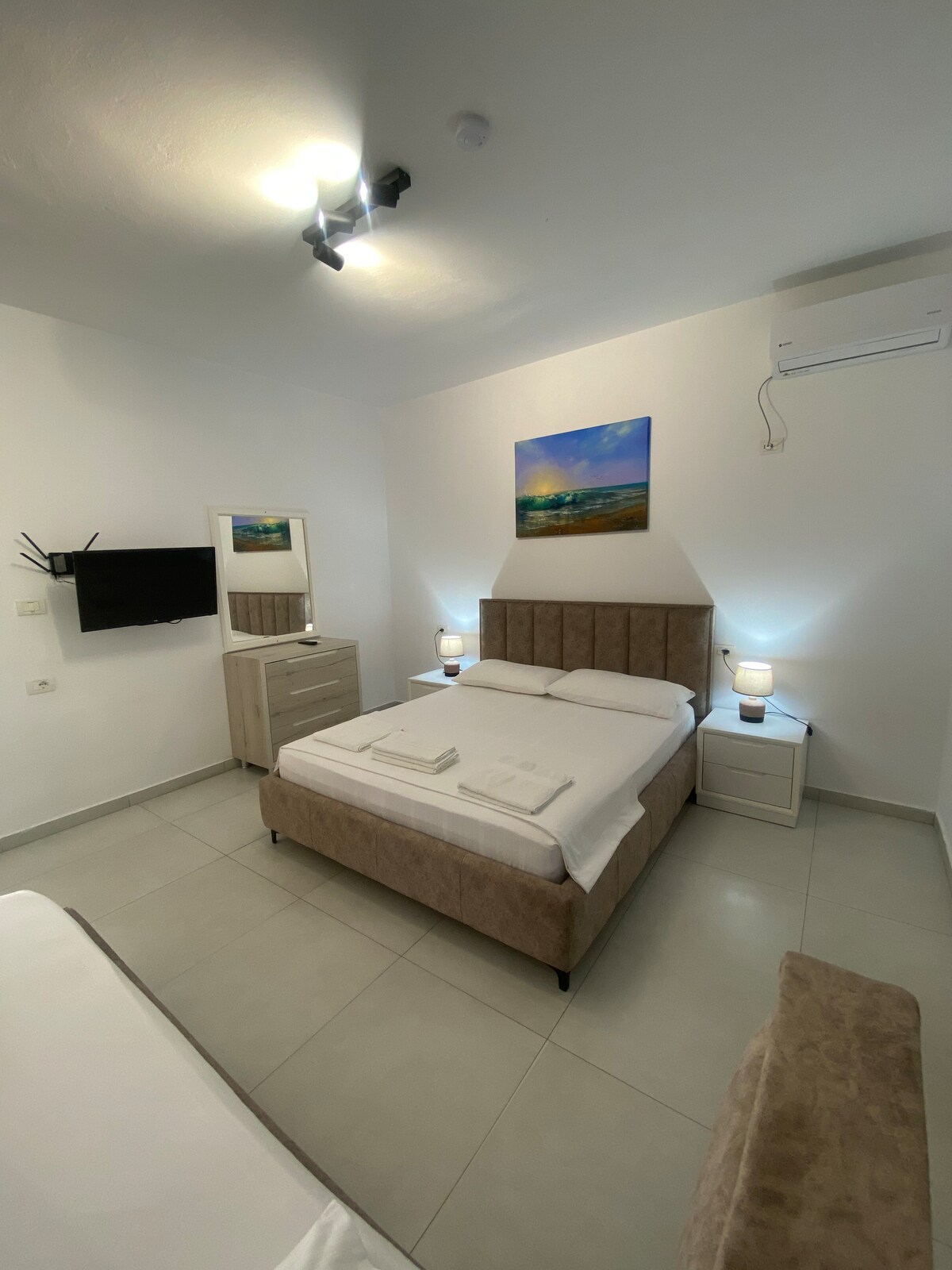 Šis skaistais dzīvoklis ir ideāla vieta visiem viesiem, kuri vēlas pavadīt savu pieredzi pludmales un promenādes ar palmām Vloras pilsētā. Atrodoties aptuveni 50 metru attālumā no jūras, jums būs iespēja izbaudīt skaistās pludmales, pastaigāties gar jūras krastu un atpūsties, izbaudot fantastisko saulrietu. Izbaudiet uzturēšanos🥰