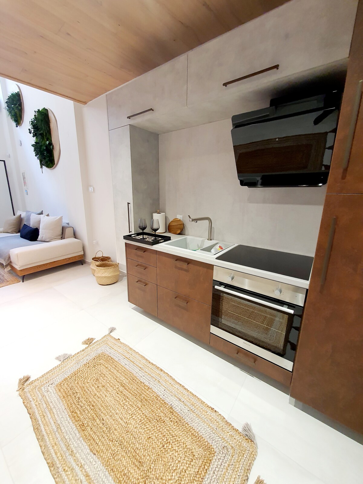 Moderna studija Volos centrā ar autostāvvietu Izbaudiet uzturēšanos elegantā un gaišā studijā jaunuzceltas ēkas 5. stāvā, Volos sirdī. Telpas ir veidotas minimālisma stilā un iekārtotas siltos toņos, nodrošinot komfortu un mieru ikvienam viesim. Atrašanās vieta ir ideāla: kafejnīcas, restorāni, veikali un piekrastes promenāde, tajā pašā laikā 5. stāvs nodrošina klusumu un komfortu. Ideāli piemērots pāriem, darījumu braucieniem, īsiem atpūtas braucieniem.
