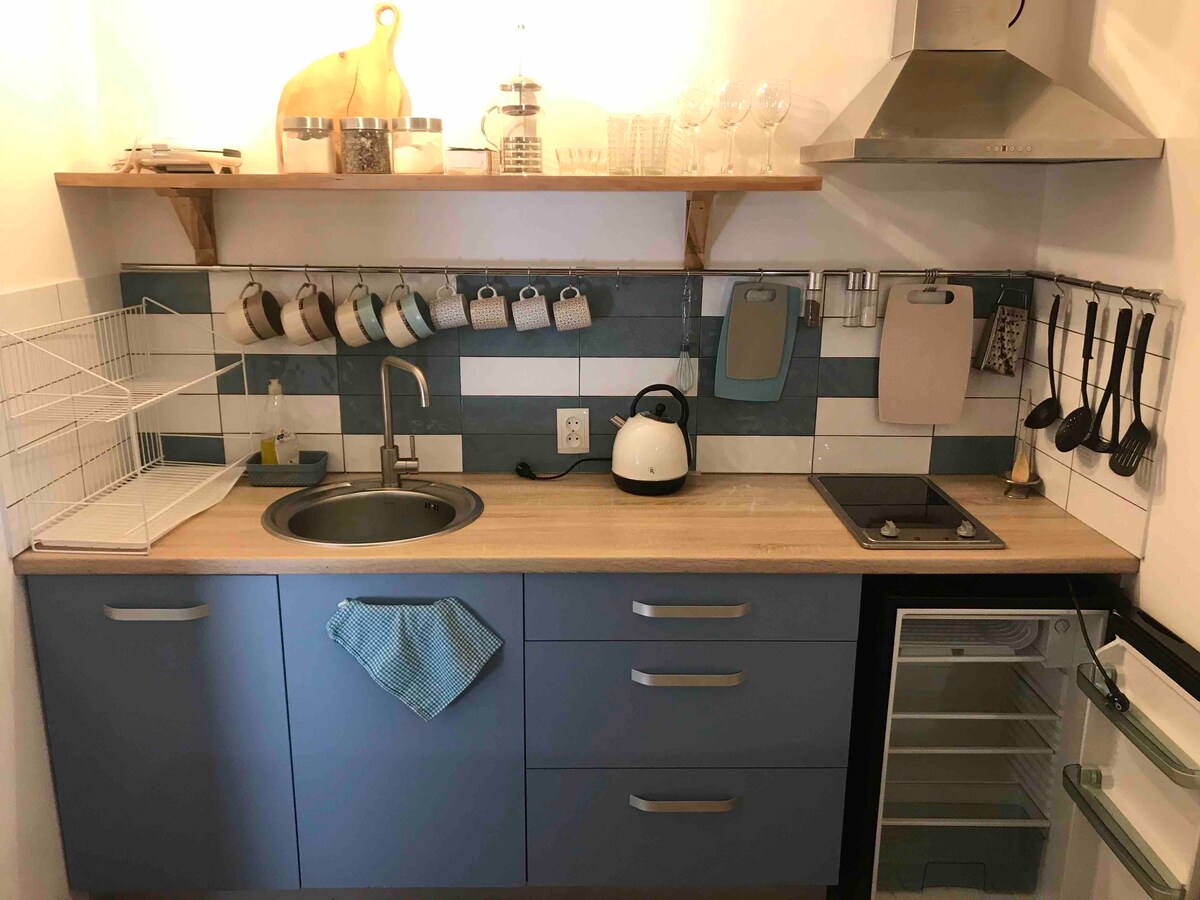 Izbaudiet stilīgu piedzīvojumu šajā centrā esošajā mājoklī. Silts, mājīgs dzīvoklis pašā Mukačvo sirdī. Apsildāms grīdas segums ieejā un vannasistabā. Pilna virtuve, izvelkams dīvāns un ļoti ērta gulta. Modernizēts Wi-Fi un veļas mašīna. Kondicionieris vasarai. Droša autostāvvieta katru dienu, kas atrodas tieši aiz dzīvokļa.