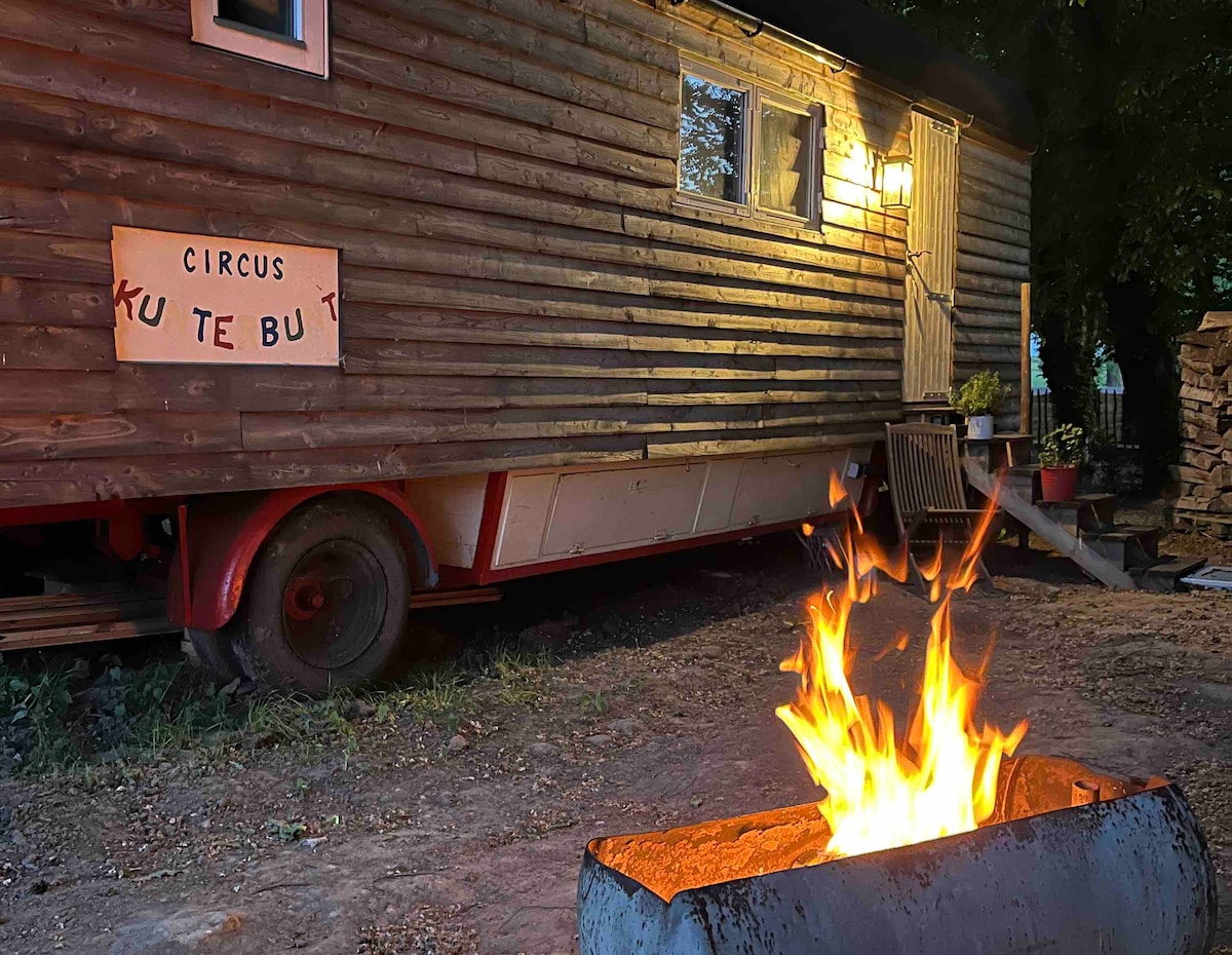 Willkommen im Zirkus Eutopia! Wir laden euch ein zu einem magischen Urlaub in einem liebevoll ausgebauten Zirkuswagen. Dieser befindet sich auf der Insel Ummanz mitten im Nationalpark Vorpommersche Boddenlandschaft und bietet einen herrlichen Blick auf die Insel Hiddensee. Die Wohnfläche von mehr als 30 qm sowie der komfortable fast schon luxuriöse Ausbau ermöglichen ein einmaliges Urlaubsgefühl. Geniesst eure Zeit auf der 20 qm großen überdachten Terrasse. Zusätzlich steht euch noch ein großer möblierter Grillplatz zur Verfügung. Warum sich im Urlaub also mit Plastikidylle zufrieden geben? Perfekt ist der Wagen zwar für einen Paarurlaub, aber es finden bei ausgeklappter Liegefläche im Wohnzimmer bis zu 4 Personen in ihm Platz. Wer möchte kann natürlich auch mit dem Zelt vorlieb nehmen.