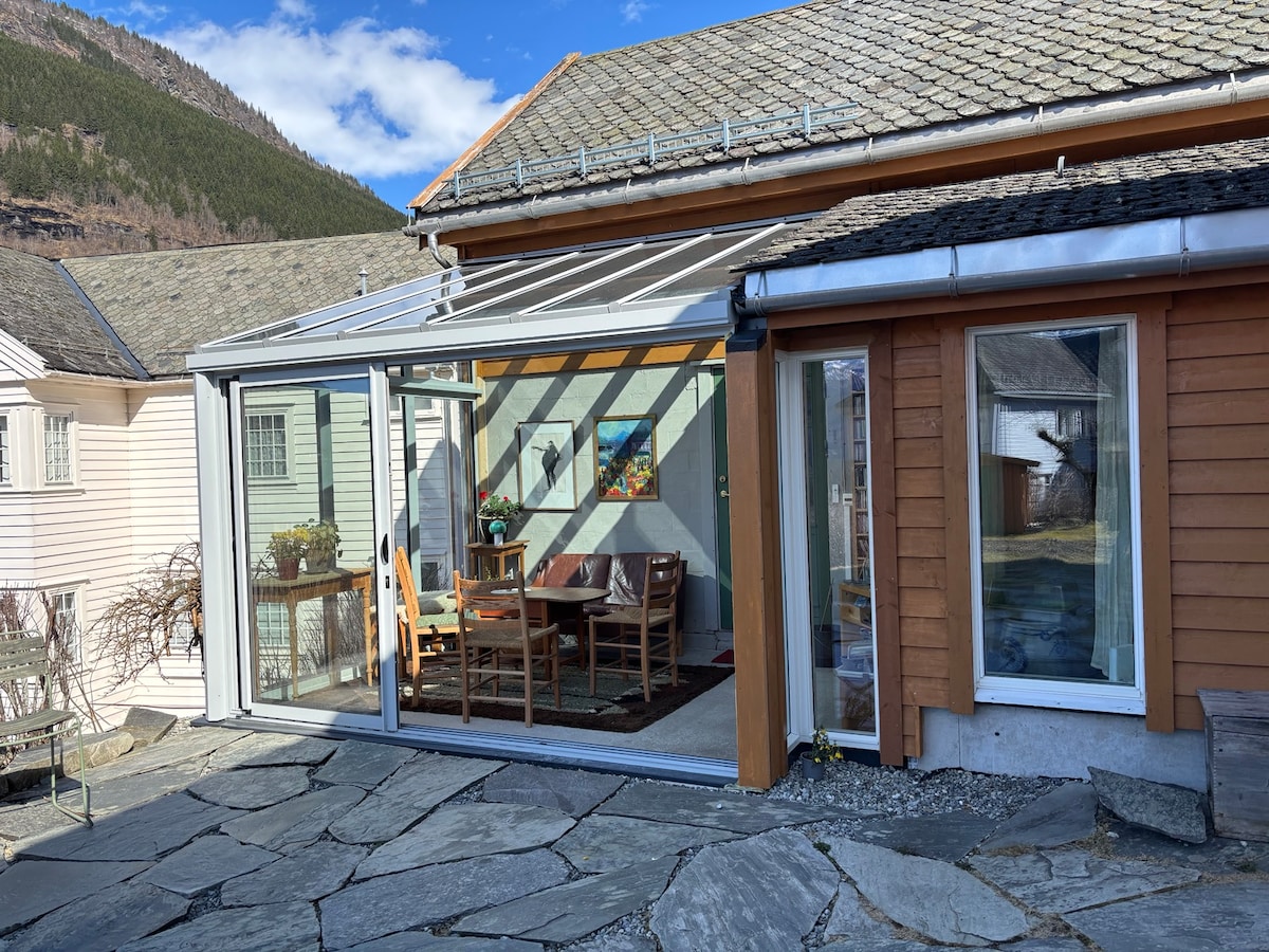 Ulvik, The Pearl of Hardangerfjord. Nometiet somas un sāciet pētīt! Mūsu burvīgais ciemats ir ideāli piemērots pārgājieniem un apskates objektiem. Tikai 25 minūšu gājiena attālumā līdz Sidra maršrutam vai dodieties gleznainā braucienā 1h30 līdz ikoniskām vietām: Trolltunga, Flåm, Vøringsfossen. Mūsu mājīgā 1850. gadu kotedža, kas būvēta klasiskā norvēģu stilā. W/ 3 stāvi, 5 guļamistabas, 2 vannasistabas, 2 virtuves, ērti guļ līdz 11 viesiem. Tas ir pilnībā aprīkots, aprīkots ar autentiskiem norvēģu akcentiem. Uzticams Wi-Fi. Pašreģistrēšanās, iežogots dārzs.