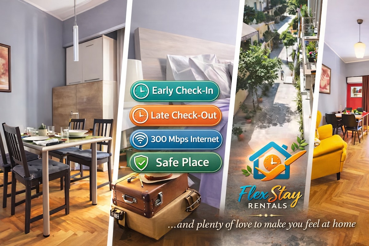 Jūtieties kā mājās šajā atjaunotajā, saules pielietajā dzīvoklī Pagrati (4. stāvā). Mājīga atpūta, kas apvieno vietējo atmosfēru ar mūsdienīgu komfortu. Īpašās iezīmes: 🚀 500 Mb/s Wi-Fi: ātrs optiskās šķiedras internets, ideāli piemērots digitālajiem klejotājiem. 🛏️ Augstākais komforts: 2 karaliskas gultas ar augstākās kvalitātes matračiem mierīgam miegam. 🏙️ Skats: balkons ar brīvu skatu uz pilsētu, netālu no stadiona. Pilnībā aprīkots, lai jums nekā netrūktu. Ideālas "mājas prom no mājām" ceļotājiem, kuri meklē kvalitāti un atpūtu.
