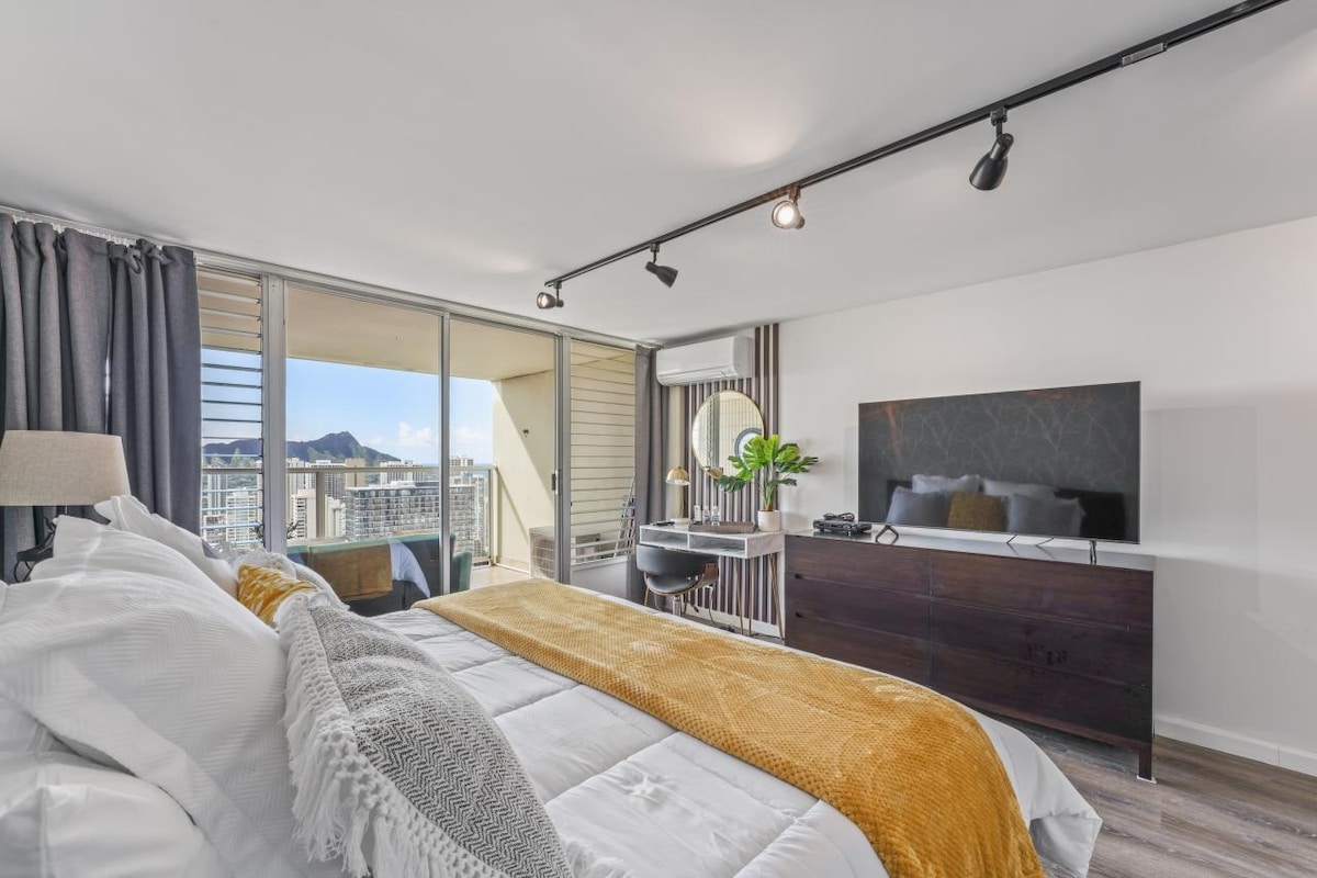 Mājīga Sky Studio B 35. stāva Vaikiki skats uz okeānu!