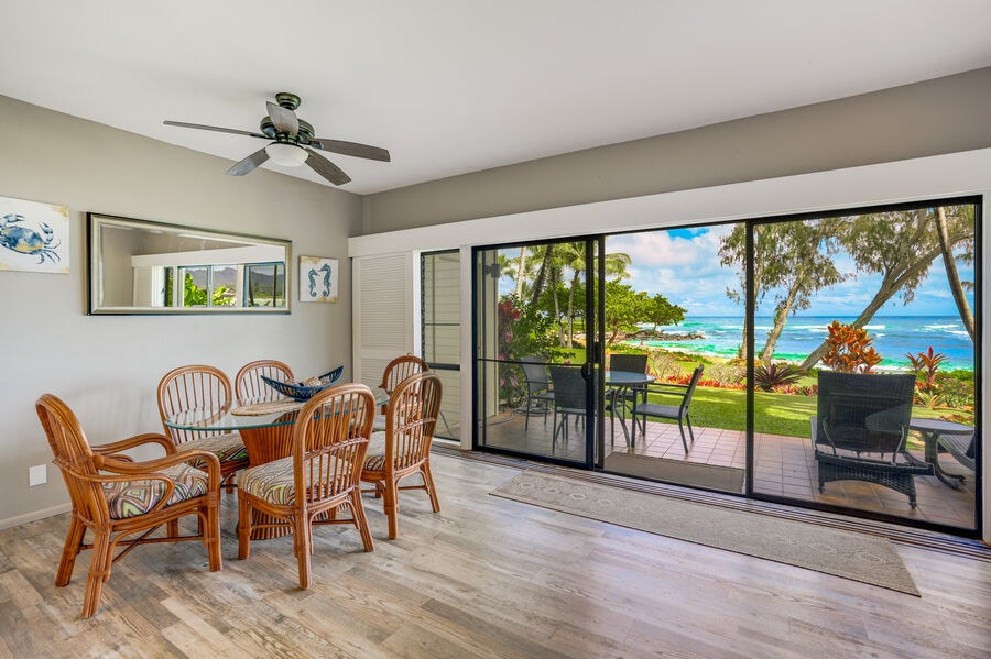 Augšstāva studijas tipa dzīvoklis ar skaistu skatu uz okeānu, dzirdiet viļņus no jūsu balkona. Pakāpieni no pludmales, baseina/burbuļvannas/Tiki bāra un Cabanas. Lush Tropical setting w/ Ocean Breezes. Pastaigas attālumā atrodas daudz veikalu un restorānu. Atrodas Kauai austrumu pusē, tikai 10 minūšu attālumā no lidostas. Iztīriet atjauninātus mājokļus ar gaisa kondicionētāju un lielu 50collu viedtelevīziju. Ietver pludmales krēslus, Boogie dēļus, dzesētāju un snorkelēšanas aprīkojumu. Patiesa paradīze