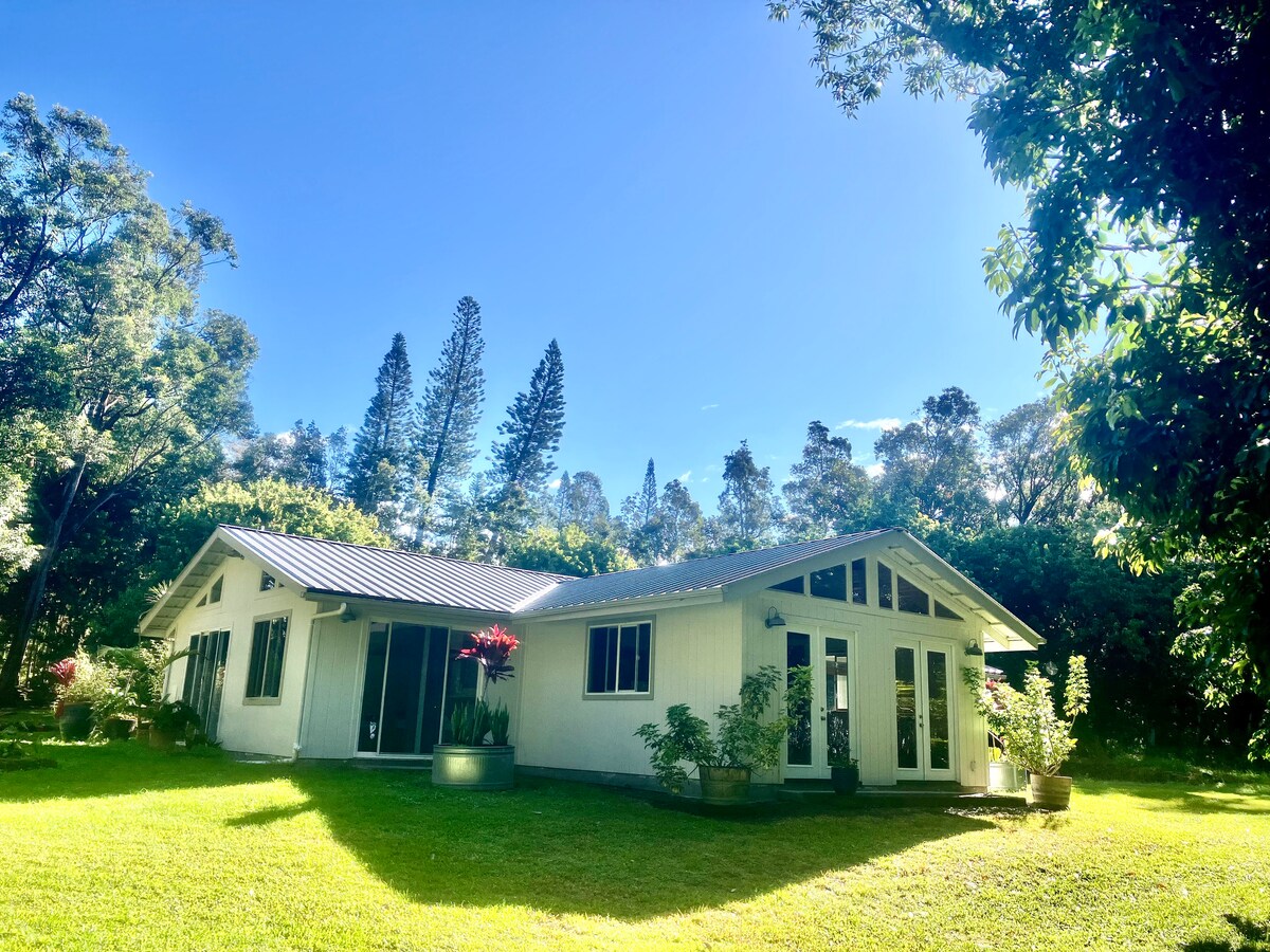Laipni lūdzam The Flower Bed - siltumnīcas namiņā Mauna Loa nogāzēs, Lielajā salā ar visu, kas nepieciešams lieliskai atpūtai. Atpūtieties āra terasē, omulīgi pavadiet laiku ar grāmatu par sēdvietu, baudiet nokrišņu dušu. Skatieties uz apbrīnojamajām zvaigznēm un ļaujieties nakts dabas skaņām. Pamostieties no putniem dziesmā un rīta saulē, kas filtrē pa logu. Nogaršojiet ēdamu ziedu, izmantojiet šķipsniņu lavandas mieram un baudiet skatu uz okeānu. Jūs nenožēlosiet, ka uzturējāties vairākas naktis!