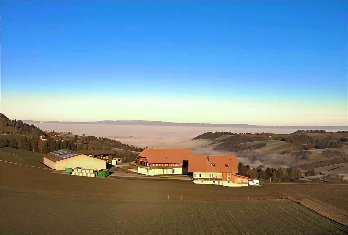 Skaists divu guļamistabu dzīvoklis laukos ar lielisku skatu uz Bernes Alpiem. Eiger, Mönch un Jungfrau. Viena guļamistaba ar divguļamo gultu un izvelkamu gultu. Viesistaba/ēdamistaba ar divguļamo dīvāngultu. Pilnībā aprīkota virtuve cilvēkiem, kuriem patīk gatavot. Pilnībā aprīkota vannasistaba. Dzīvoklis atrodas lauku mājā darba saimniecībā.