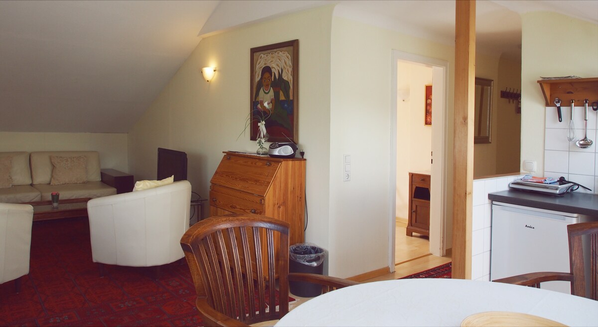 Piedāvājam klusu, mēbelētu vienas guļamistabas dzīvokli ar saulainu terasi no 1 līdz maks. 3 cilvēki (gulta 1,40 x 2,00m un dīvāngulta). Ir pieejama minivirtuve ar izlietni, ledusskapi un tējkannu, mikroviļņu krāsni (ar cepšanas funkciju). Bezmaksas Wi-Fi. Ērts transporta savienojums tieši ar A81/B27. Ekskursiju galamērķi, piemēram, pie Konstances ezera, ir sasniedzami 30-45 minūšu laikā 30-45 minūšu laikā. Turklāt laba iepirkšanās Trossingen (3 km) un VS-Schwenningen (8 km) ir sasniedzama 5-10 minūšu laikā ar automašīnu.