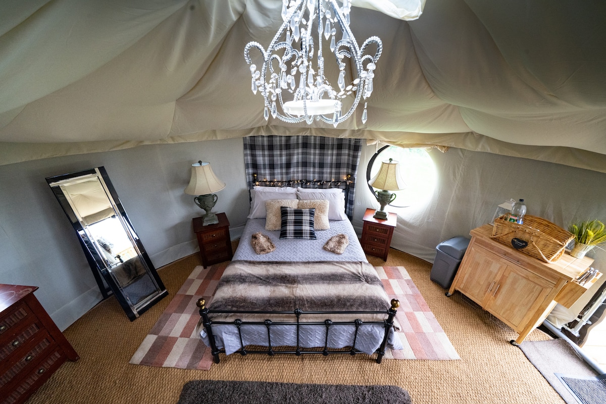 Nošķirts slēpnis Snoudonijā Bedw Glamping jurtā.