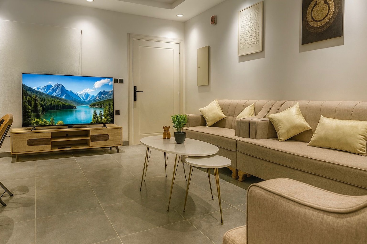 Luksusa numurs ar ērtu galveno gultu, elegantu atpūtas zonu, viedo ekrānu, privātu vannasistabu un kafijas stūrīti. Tuvu Svētajai mošejai un klusā un drošā vietā blakus Al Rajhi mošejai, ar ērtu piekļuvi tirdzniecības centriem, restorāniem un gājēju celiņam. Ideāli piemērots atpūtai un mieram visskaistākajos brīžos. Luksusa numurs ar galveno gultu, stilīgām sēdvietām, Smart TV, privātu vannasistabu un kafijas stūrīti. Netālu no Al-Haram klusā, drošā vietā blakus Al-Rajhi mošejai, ar piekļuvi tirdzniecības centriem, restorāniem un pastaigu zonām. Ideāli piemērots komfortam, atpūtai un neaizmirstamai uzturēšanās vietai.