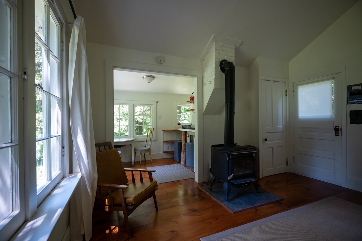 Milzu koki sagaida jūs atpakaļ uz namiņu mežā. Namiņš kopā ar manu māju un nelielu kotedžu atrodas 2,5 akru lielajā īpašumā. Mūsdienīgs tērauda un priedes namiņš ar velvētiem griestiem un debesu gaismām. Atvērta dzīvojamā telpa, aicinoša divguļamā gulta (Queen), luksusa lietus duša, pilna virtuve, bet bez plīts. Malkas kamīns - nokrīt līdz marta beigām un pie ugunskura vietas. Publiska pludmale 5 minūšu brauciena attālumā. Pāri apskata namiņu jubilejās un īpašās dienās.