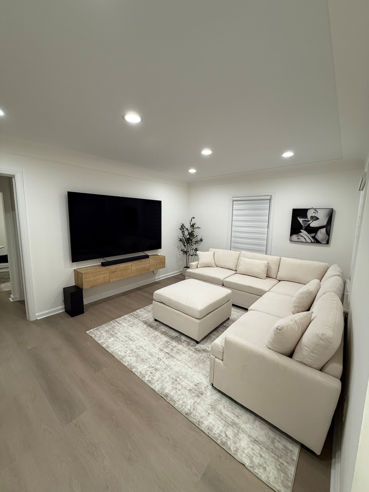 Located near downtown Royal Oak, this Madison Heights home features a fully remodeled, modern interior. It has 2 bedrooms—one with a king bed and Smart HDTV, the other with a queen—both with new mattresses and modern furniture. The open-concept layout includes a kitchen, dining area, and living room with a large Smart HDTV. The kitchen is fully equipped with stainless steel appliances and a coffee bar. A separate laundry room includes a washer and dryer. WiFi is available as well.