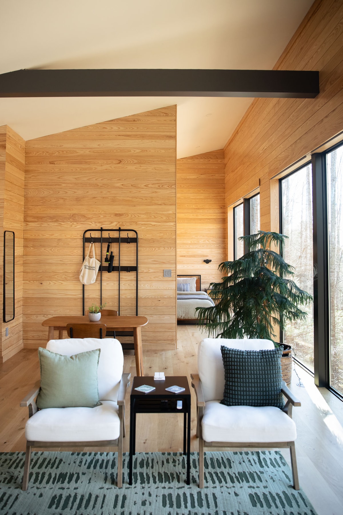 Privāts, mājīgs viesu numurs, ko ieskauj daba