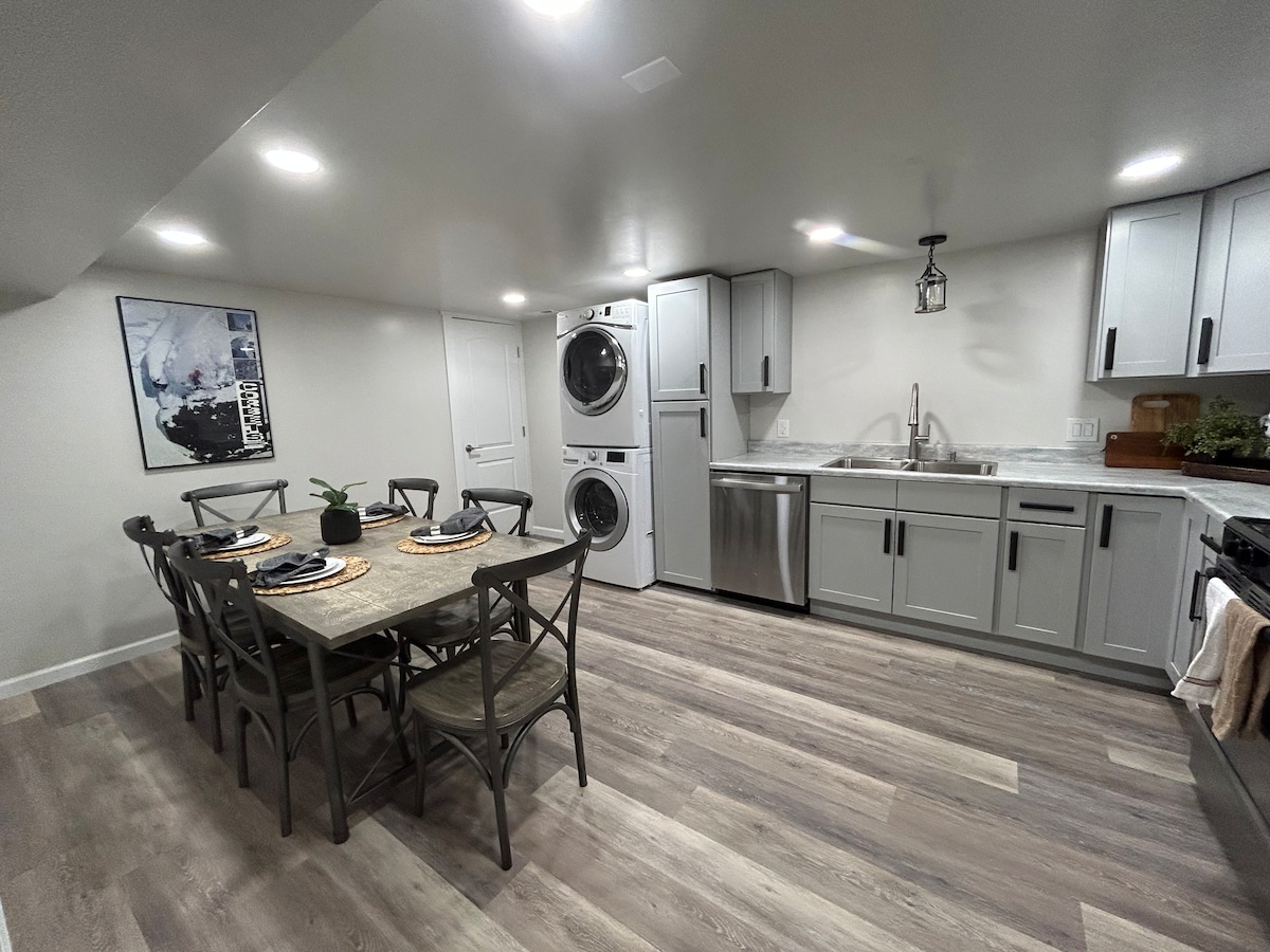 Krāšņs, pārbūvēts mājoklis Ogdenas austrumu solā. Guļ pieci ērti, un tajā ir divas pilnas vannasistabas. Tikai piecu minūšu gājiena attālumā no takām un skatiem, no kuriem paveras skats uz Lielo Soltleiksitiju. Tikai 45 minūtes līdz SLC lidostai, 25 minūtes līdz Snowbasin un 30 minūtes līdz Powder Mountain. Jums ir pilna piekļuve galvenajam stāvam, kurā ir divas guļamistabas, divas pilnas vannasistabas, viens divguļamais dīvāns ģimenes istabā, pilna gardēžu virtuve, veļas mazgātava, aizmugurējais balkons, piebraucamais ceļš un visas galvenās grīdas zonas.