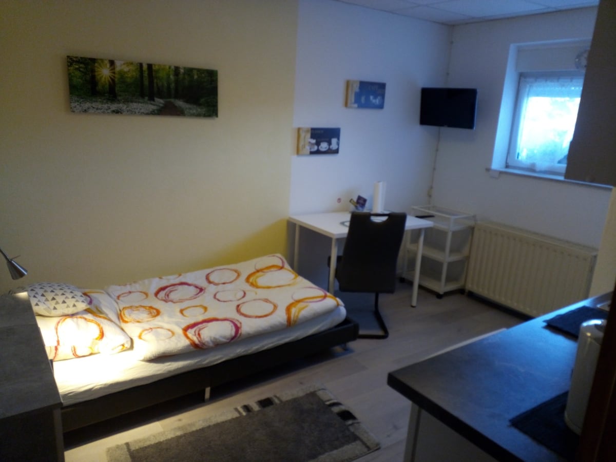 Ļoti jauks un ar mīlestību iekārtots dzīvoklis 1- 2 cilvēkiem ar visu nepieciešamo. Centrālā, taču klusā vietā, jo tā neiziet cauri satiksmei. Viegli sasniedzams ar sabiedrisko transportu (5 minūšu gājiena attālumā), bet arī ar automašīnu, kurai ir privāta autostāvvieta. Mēs ar prieku uzņemam viesus, kuri vēlas atpūsties Bergisčas zemē vai arī kādu laiku cenšas strādāt Hīckesā vai apkārtnē.