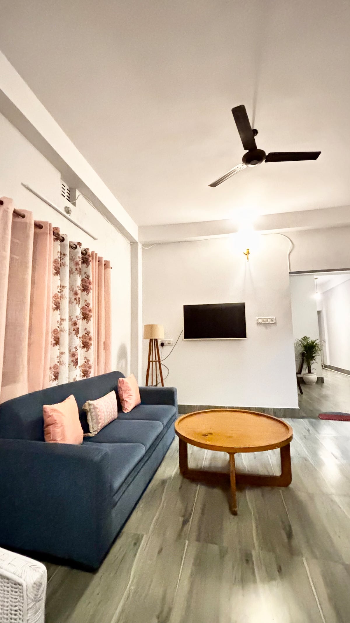 Cozy 1BHK on the ground floor with a home-theatre vibe! Enjoy a huge projector for movie nights, a fully equipped kitchen with fridge, microwave, water purifier, and all essentials. The bedroom features a snug king-sized bed, AC, and ample storage. Includes washing machine, clean bathroom with essentials, WiFi, and self-check-in for your convenience. Pet-friendly and perfect for couples, solo travellers, or long stays. Private unit with no shared spaces. Local identity proofs not accepted.
