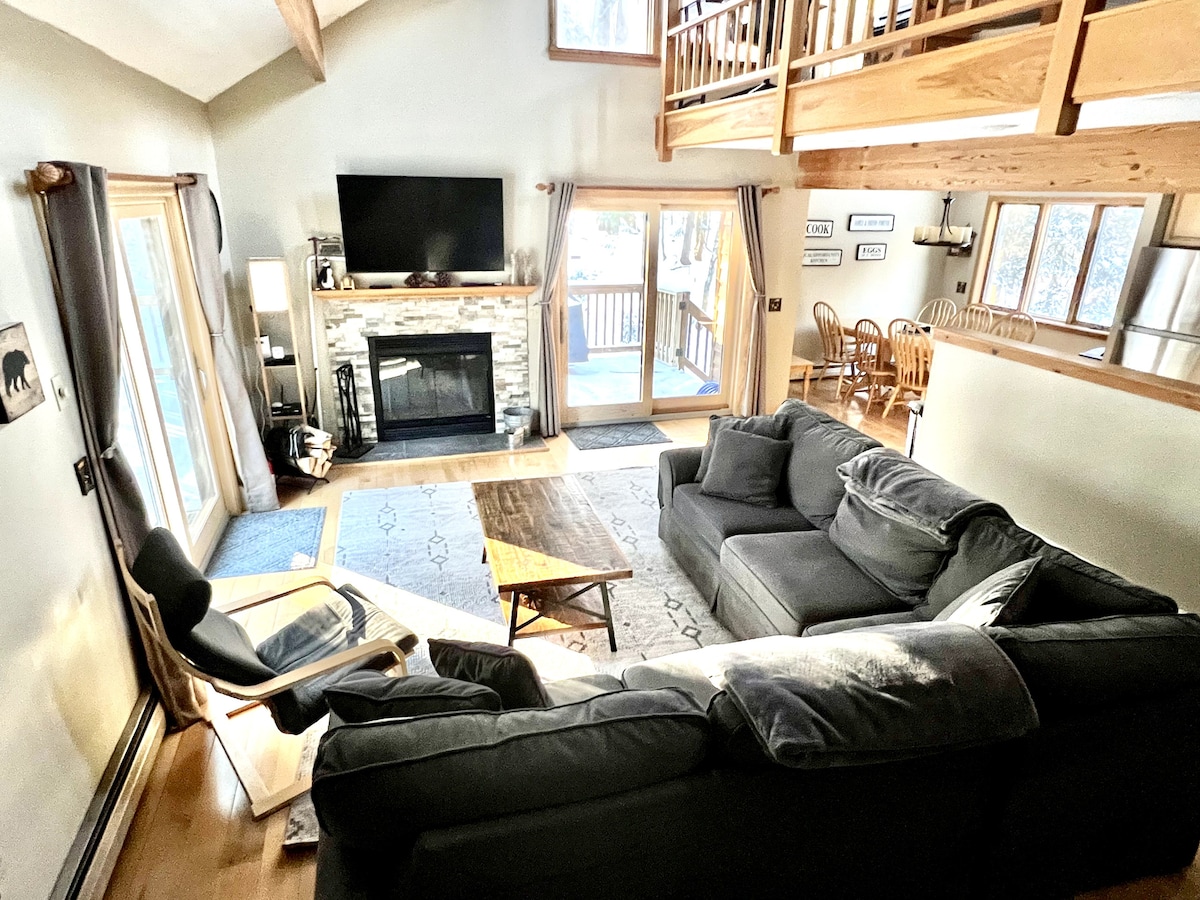 4-bed, 3-bath retreat that offers the perfect mix of privacy and convenience. Nestled at the end of a quiet cul-de-sac and surrounded by trees, it’s an ideal getaway for families or groups for up to 8 guests. Inside, you’ll find comfortable living areas, with king beds in the primary rooms upstairs, and a modern kitchen with new appliances. The rec room features a hot tub, foosball, darts, and ping pong. The backyard is perfect for outdoor dining in summer — and for sledding during snow days!