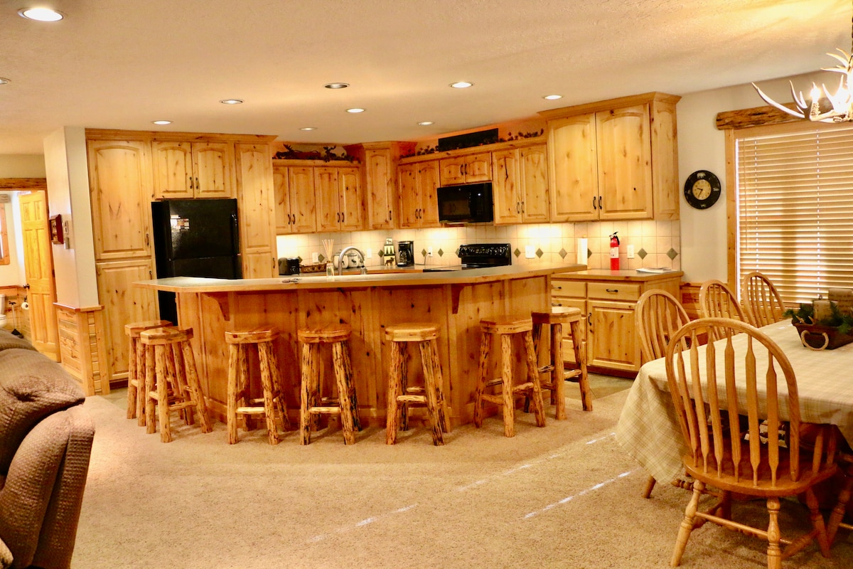 Skaisti iekārtots 3BR/3BA + lofta Firelight kalnu namiņš ar pievienotu garāžu Big Sky sirdī. Šī plašā atpūtas vieta ir ideāli piemērota ģimenēm, grupām vai pāriem, un tā piedāvā komfortu un ērtības tikai dažu soļu attālumā no pilsētas centra. Izbaudiet pasaules līmeņa slēpošanu, pārgājienus, golfu, makšķerēšanu un plostniecību, Jeloustonu un Bozemanu tikai 45 minūšu attālumā. Šis mājoklis atrodas mierīgā vietā, un tā ir ideāla bāze, lai atpūstos, iepazītu apkārtni un radītu paliekošas atmiņas.