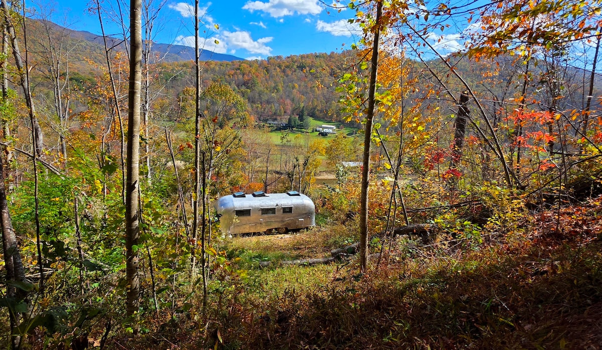 As its name suggests, The RhodoDen is a cozy 1974 Airstream Argosy nestled among the rhododendron of the Blue Ridge Mountains. Set along a trickling creek with a bonfire ring and a view of nearby Watch Knob, this is "glamping" at its finest. RhodoDen provides an idyllic place to relax, and is a great basecamp for hiking adventures, dining and nightlife in Asheville and Black Mountain, both of which are only 15 minutes away. Plus we are pet friendly! Update 3/24: We built a roof!