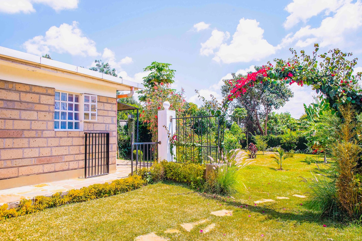 Dodieties uz ekskluzīvu privātu viesu namu Loresho Nairobi. Mēs atrodamies tikai 14 minūšu attālumā no Amerikas Savienoto Valstu vēstniecības un Apvienoto Nāciju Organizācijas galvenā mītnes. Atrodas mierīgā un drošā vietā. Aprīkots ar pilnībā aprīkotu virtuvi, divguļamo gultu, modernu vannasistabu, ātrgaitas Wi-Fi un viedtelevīziju. Atpūtieties sulīgajā dārzā vai izpētiet tuvumā esošo Vestlendu, Saritas centru, ciemata tirgu un Karuras mežu. Ideāli piemērots visiem ceļotājiem, kuri meklē komfortu un mieru. Rezervējiet tūlīt, lai atpūstos Nairobi!