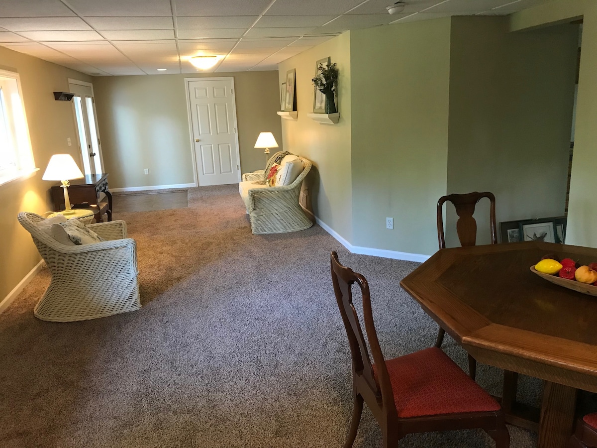 Welcome to a private hidden gem 8 minutes from the airport with an oasis of an acre of woods surrounding the property! It’s a quiet getaway from the hustle and bustle of the city but only 8 min to the Airport, 15 miles to down town. 15 min to St. Charles area and 10 min to Hollywood Casino Amphitheatre. Perfect for couples, small family or single visitor to St. Louis! Dogs are welcome to stay for an additional fee. Early checkin/checkout available for $15/hour as availability allows.