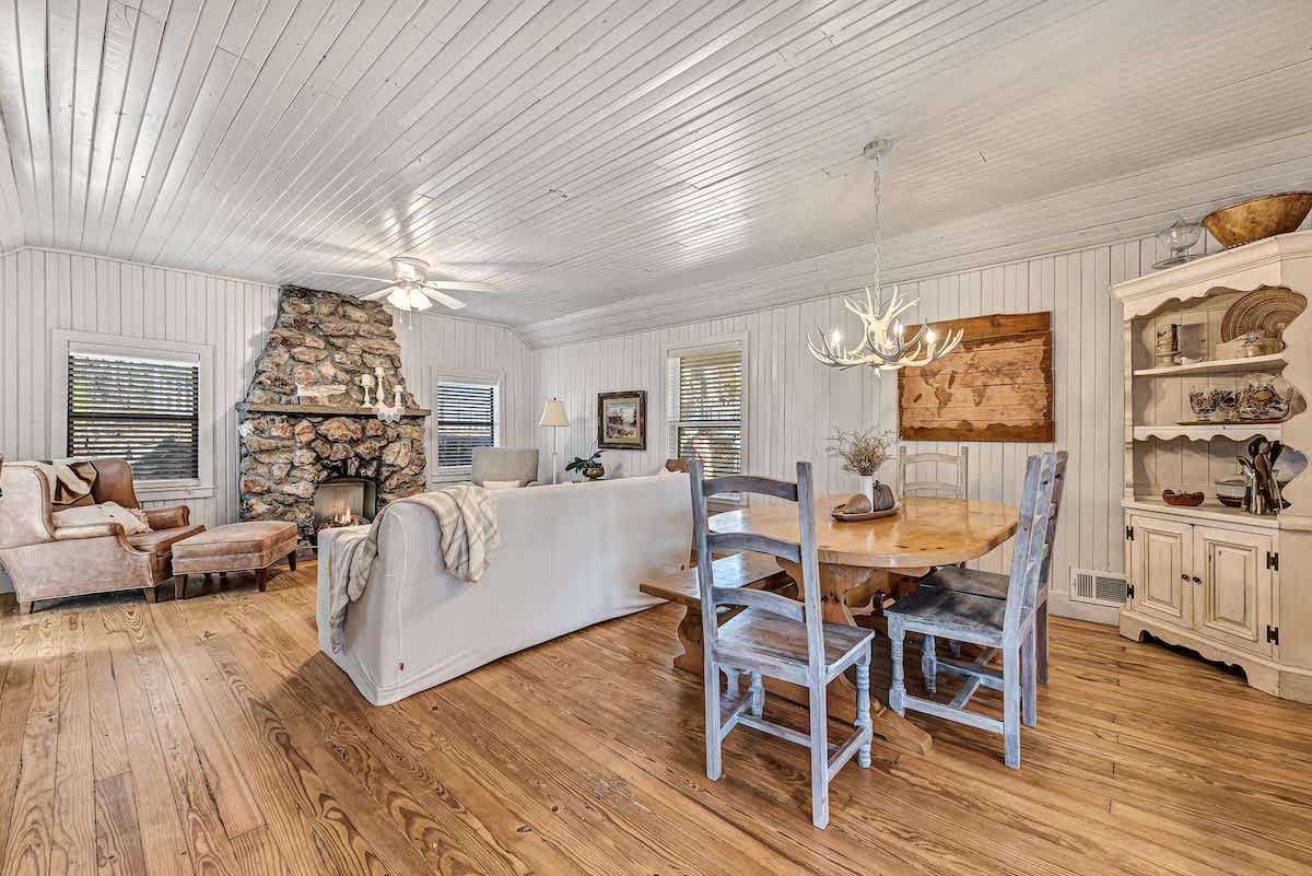Šī pilnībā renovētā, vēsturiskā kotedža atrodas 830 akru platībā, bet tikai pāris jūdzes uz dienvidiem no pilsētas, un tajā ir visas modernās papildērtības. Tajā ir atvērta stāva plāns, kas atrodas 40 pēdu attālumā no priekšpuses uz augšstāvu, vienā no mierīgākajiem un dabiskākajiem koku virsotnes. Tam ir arī divi segti/ ekranizēti klājos ar 16' bāru, kas ir ideāli piemērots, lai baudītu apbrīnojamo ainavu un The Natural State skaistumu. Tā ir ideāla vieta jūsu nākamajai ģimenes kopā sanākšanai vai vienkārši atpūtai.