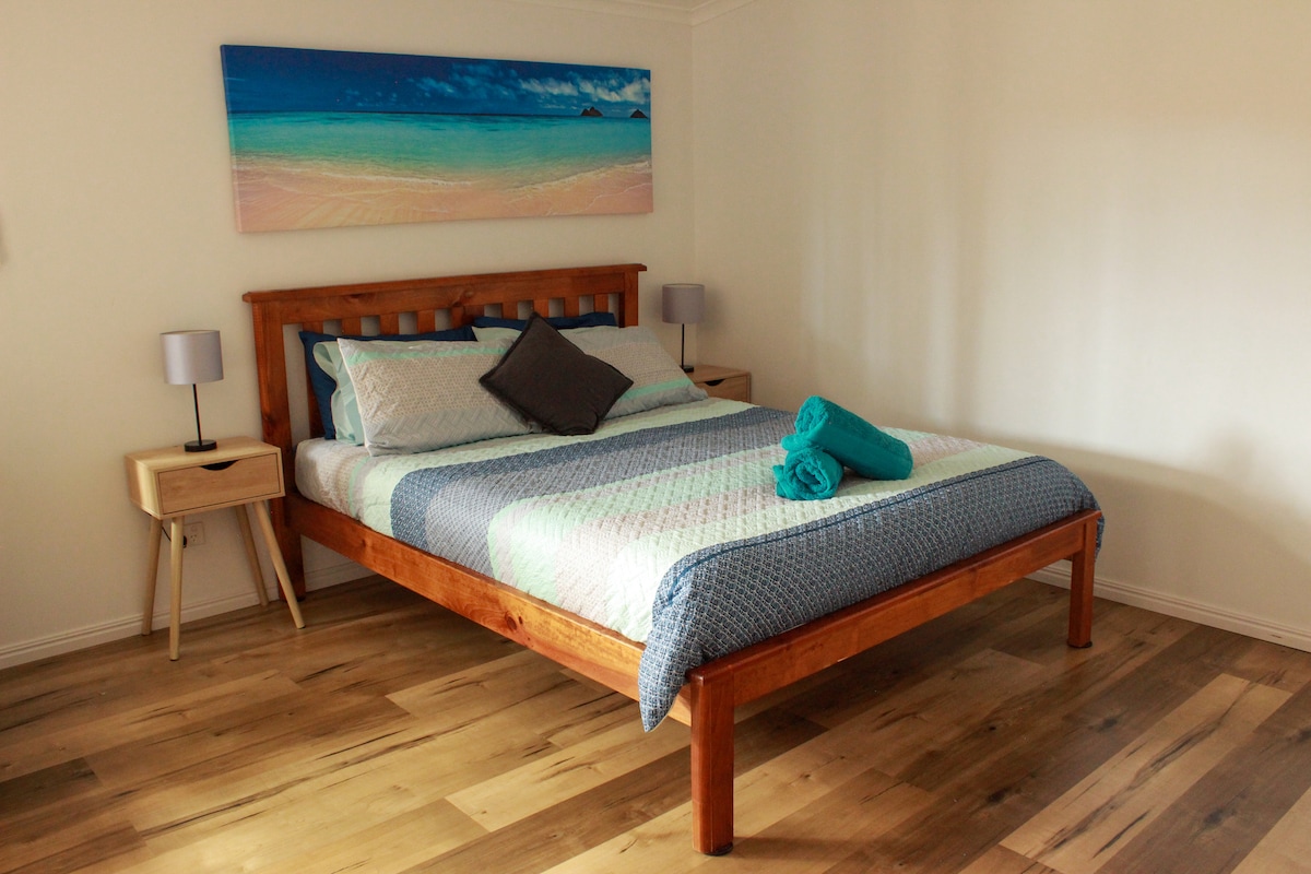 Autonoms studijas tipa dzīvoklis ar minivirtuvi un privātu vannasistabu. Jums ir atsevišķa piekļuve veļas mazgātavai un pagalmam. Šis studijas tipa dzīvoklis atrodas netālu no galvenā tirdzniecības centra, RSL, restorāniem, krogiem, stūra veikala ar līdzņemšanas vietu un pludmales. Pašā numurā ir pieejams bezmaksas Wi-Fi, Netflix, dalītās sistēmas gaisa kondicionētājs un kafijas/tējas pagatavošanas iespēja. Autostāvvieta ārpus ielas ir pieejama zem ēnas buras, bet, lūdzu, atcerieties, ka arī man ir jānovieto automašīna piebraucamajā ceļā, tāpēc, lūdzu, novietojiet automašīnu uz vienu pusi.