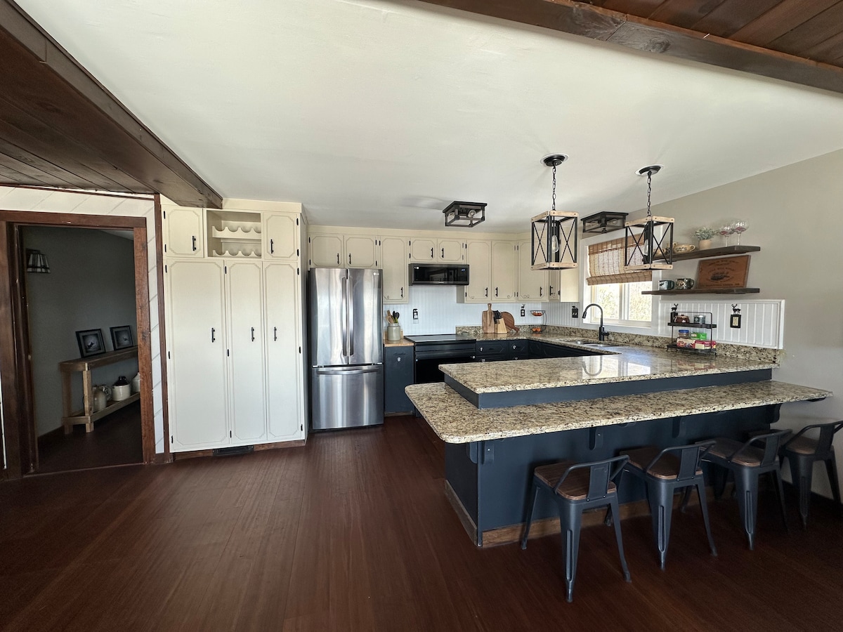 Privāta ieeja un telpa. Franču durvis, lieli logi, gaiši un gaisīgi. Lg live rm. Gulta Rm w/queen. gulta rm W/ king (divi dvīņi, kas veidoti kā karalis)vienmēr. Neliela virtuve ar mikro kafijas automātu un ledusskapi. Nav PLĪTS, tikai viens NuWave deglis. Nāciet un ejiet, kā vēlaties. Šis dzīvoklis ir mūsu mājokļa zemākais līmenis. Ļoti privāta un atsevišķa telpa. Izbaudiet 25 akrus mežainas zemes. Tikai 2 jūdzes līdz pilsētai. Lai veiktu rezervāciju, ir vismaz 21 gadu veci. Mēs neņemam bērnus, kas jaunāki par 12 gadiem, ballītes. NoPets Smēķēt aizliegts smēķēt.