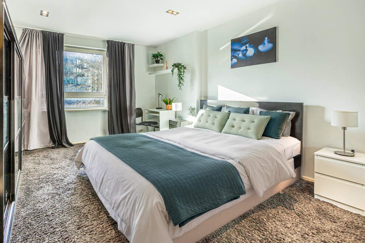 Šis skaistais 1 gultas dzīvoklis atrodas grandiozā ēkā ar satriecoši augstiem griestiem. Uzņemšanas telpa lepojas ar Sonos skaņas sistēmu un logiem no grīdas līdz griestiem, kas atveras uz privāta balkona. Virtuve ir aprīkota ar integrētu aprīkojumu, luksusa virtuves piederumiem un ēdamistabu blakus loga sēdeklim ar pēcpusdienas sauli. Galvenajā guļamistabā ir iebūvēts drēbju skapis, vannasistaba ar atsevišķu ieeju un vērsts uz rietumiem. Iekļauts ātrgaitas Wi-Fi (145 Mb/s), rakstāmgalds un viedtelevīzija.