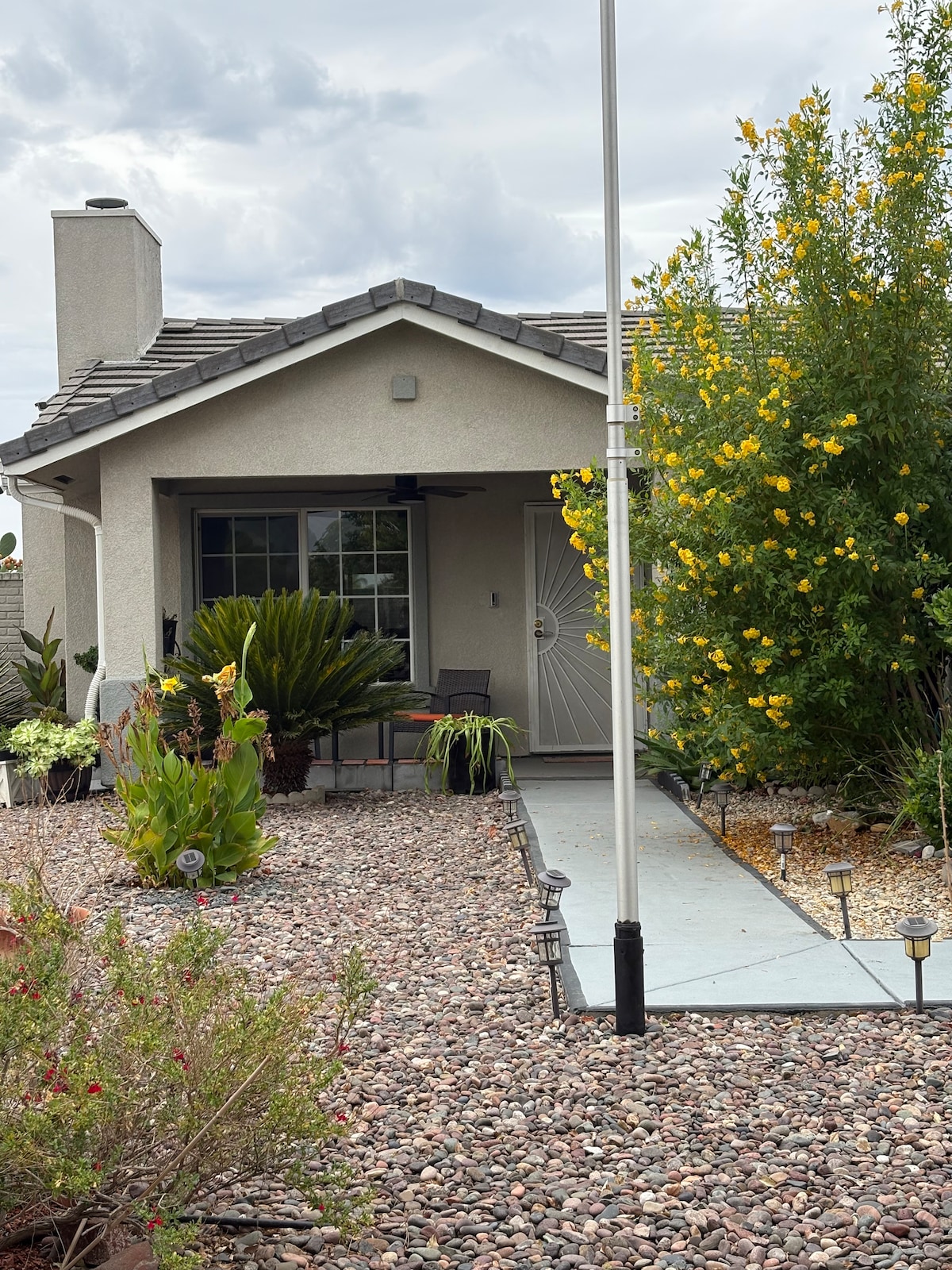 Izbaudiet brīvdienu atpūtu Palmspringsas dienvidos, 15 minūšu brauciena attālumā no pilsētas centra! No grīdām uz augšu - jaunas porcelāna flīžu grīdas, jauna duša un tualete vannas istabā, pavisam jauna nerūsējošā tērauda virtuves tehnika, skapji un aizmugures šļakatas. Arī viss, kas jums nepieciešams par nedēļu vai ikmēneša uzturēšanās nodrošināts. 65” 4K LED TV w/ internets pie 400Mbps, Sling TV, Netflix, Hulu, Amazon Prime Video, HBO, Showtime, un Starz, Ligzda termostats, & Augusts smart lock tehnoloģija drošībai. Pilsētas ID# 1696