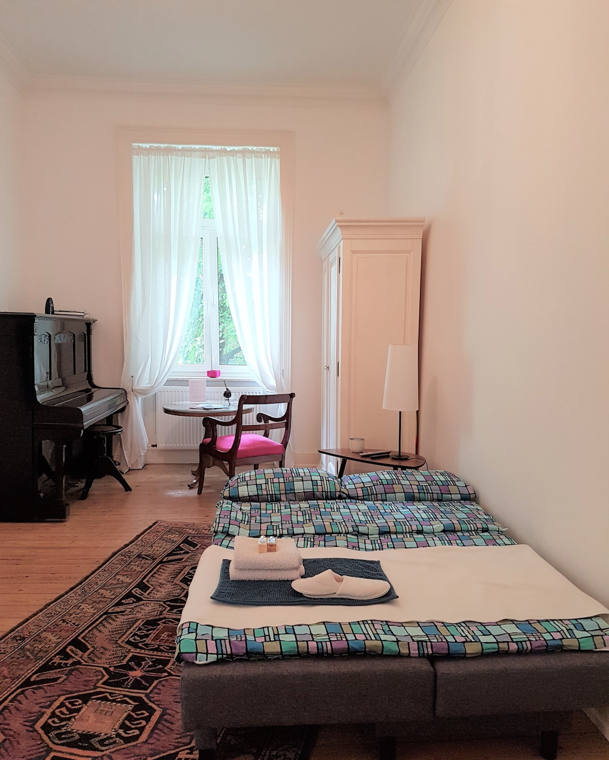 Willkommen in dieser stilvollen Altbauwohnung im 2.OG ohne Aufzug, die mit ihrem gemütlichen Ambiente ein echtes Zuhause-Gefühl vermittelt. Die geräumigen Zimmer bieten Platz für bis zu 6 Gäste und sind ideal für Familien oder Gruppen. Mit umfangreicher Ausstattung und viel Liebe zum Detail erfüllt die Wohnung jegliche Wünsche. Sie ist kinderfreundlich und perfekt für die kleinen Gäste. Erleben Sie einen unvergesslichen Aufenthalt in dieser schönen Unterkunft!