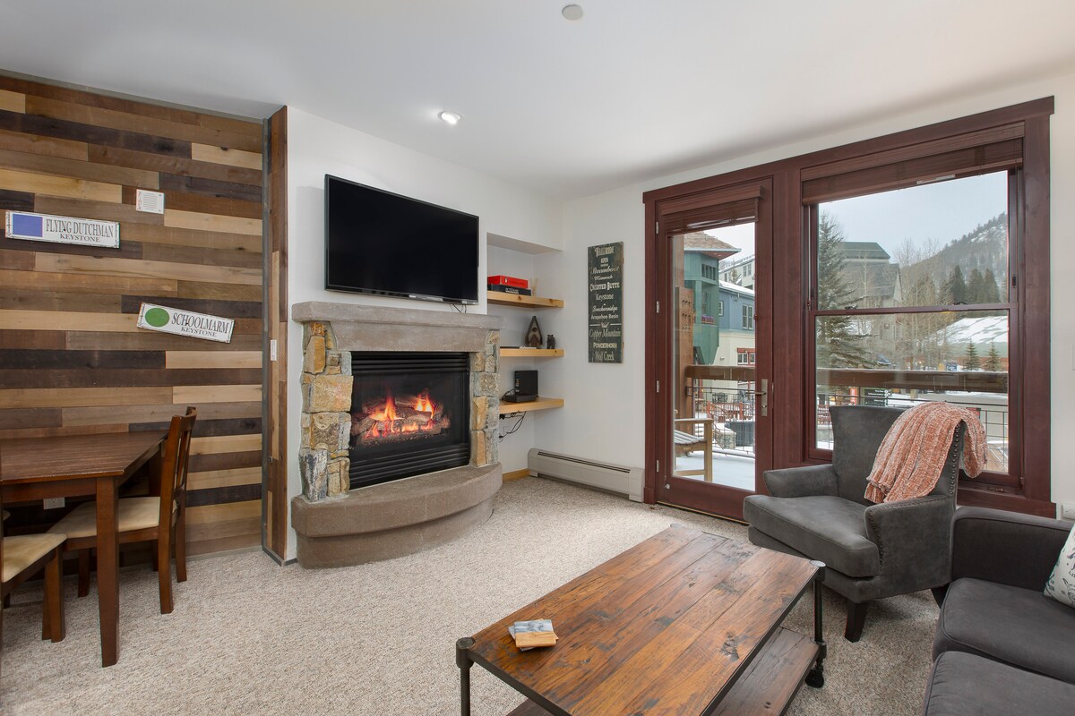 Ērta studija ar kamīnu 4 guļvietas, un tā atrodas Keystone ciematā ar skatu uz 5 akru ledus laukumu. Ik pēc 20 minūtēm brauciet ar ātru bezmaksas autobusu uz nogāzēm Jums var patikt arī Keystone Resort papildērtības, kas ietver apsildāmu āra baseinu, iekštelpu āra džakuzi, pirtis, sporta zāli un PILNUS SPA KŪRORTA PAKALPOJUMUS!!!! Vairāk bilžu meklējiet saiti uz "Alpenglow Spa at Keystone Resort". Pazemes apsildāma autostāvvieta un lifts uz jūsu daudzdzīvokļu namu! Labākā cena ar skatiem!