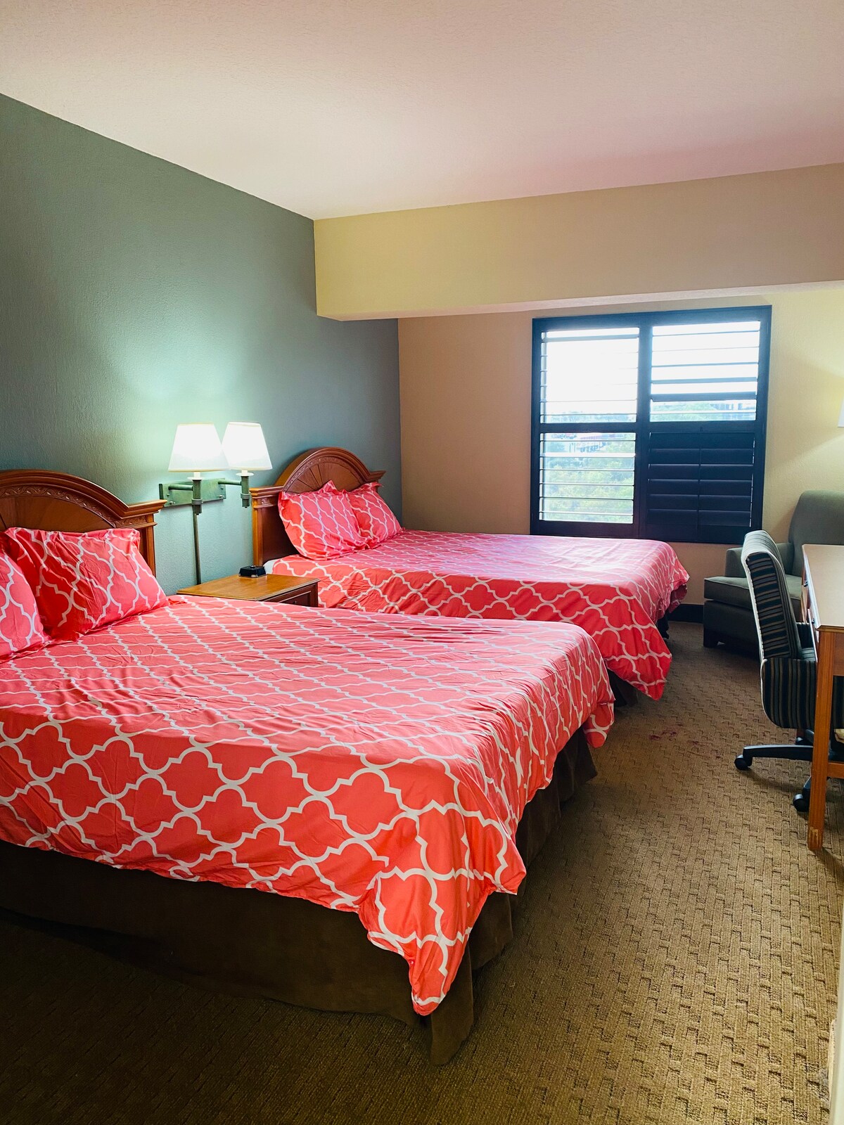 Atjaunots studijas tipa dzīvoklis ar balkonu, skatu uz baseinu un universālajiem Orlando parkiem. Atrodas pašā International Drive centrā. Pasaules līmeņa vakariņas, atrakcijas, iepirkšanās, izklaide un naktsdzīve ir pastaigas attālumā. Dzīvoklis tika pārveidots ar vairākiem uzlabojumiem. Pilnībā aprīkots ar pilna izmēra ledusskapi, minivirtuvi, divguļamo gultu un balkonu. Trīs kopienas baseini un burbuļvannas, restorāns, pamata sporta zāle, teniss, veļas mazgātava ($), bezmaksas Wi-Fi un bezmaksas autostāvvieta uz vietas. Bez "kūrorta pakalpojumu nodevas" vai slēptām nodevām.