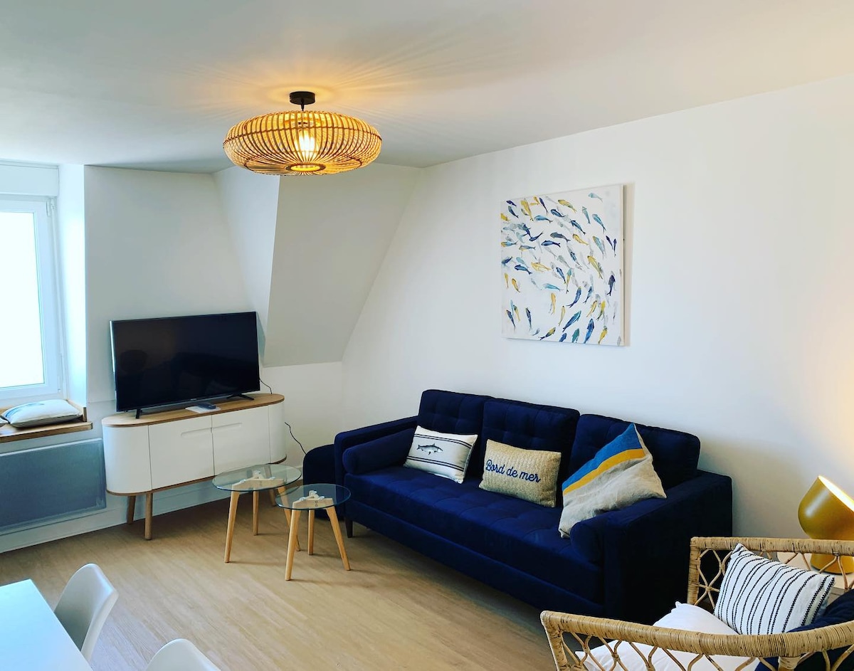 Ļaujiet sev apbrīnot jūru, ērti sēžot viesistabas dīvānā... Mūsu dzīvoklis atrodas "Grand Bleu" 6. un augšējā stāvā (pieejams ar liftu). No tās paveras lielisks skats uz jūru, kas ļauj apbrīnot Boulogne bāku vienā pusē, bet otrā - Opal Coast un angļu klintis, ja laiks ir maigs. Piekļuve pludmalei ir tieši dzīvokļa pakājē, un bērnu baseins ir tieši pāri ielai.