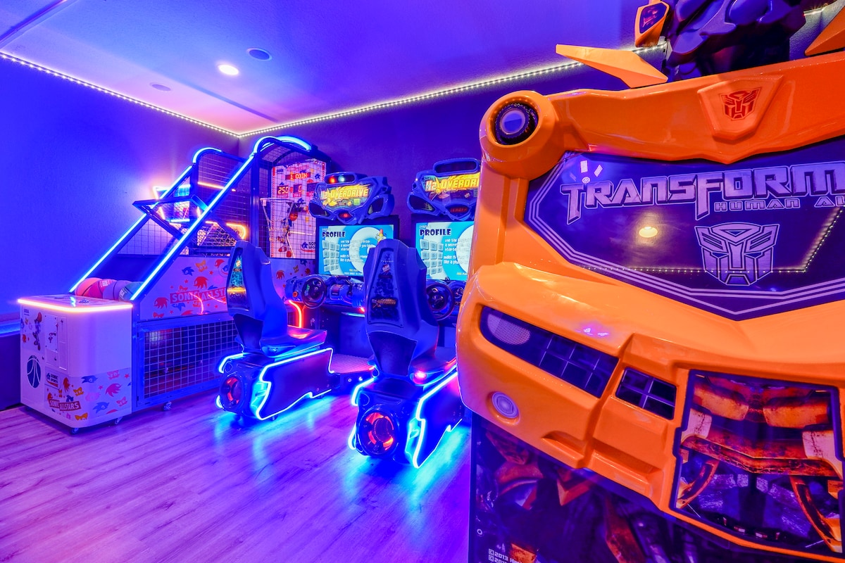 Laipni lūdzam Playcation Paradise by Cosmic Vacations. Šī ir jūsu sapņu atpūta Vindzorhilsas kūrortā - tikai 3 jūdžu attālumā no Disney World, 15 jūdžu attālumā no Universal un tikai 0,4 jūdžu attālumā no Vindzorhilsas neticamajām papildērtībām! Izbaudiet privāto baseinu un spa vai izbaudiet piedzīvojumu pielāgotajā spēļu istabā ar komerciālas klases arkādes spēlēm, kas paredzētas bezmaksas spēlēm. Turklāt jums būs bezmaksas piekļuve Vindzorhilsas augstākās klases papildērtībām, tostarp lagūnas stila baseinam, ūdens slidkalniņiem un sporta laukumiem.